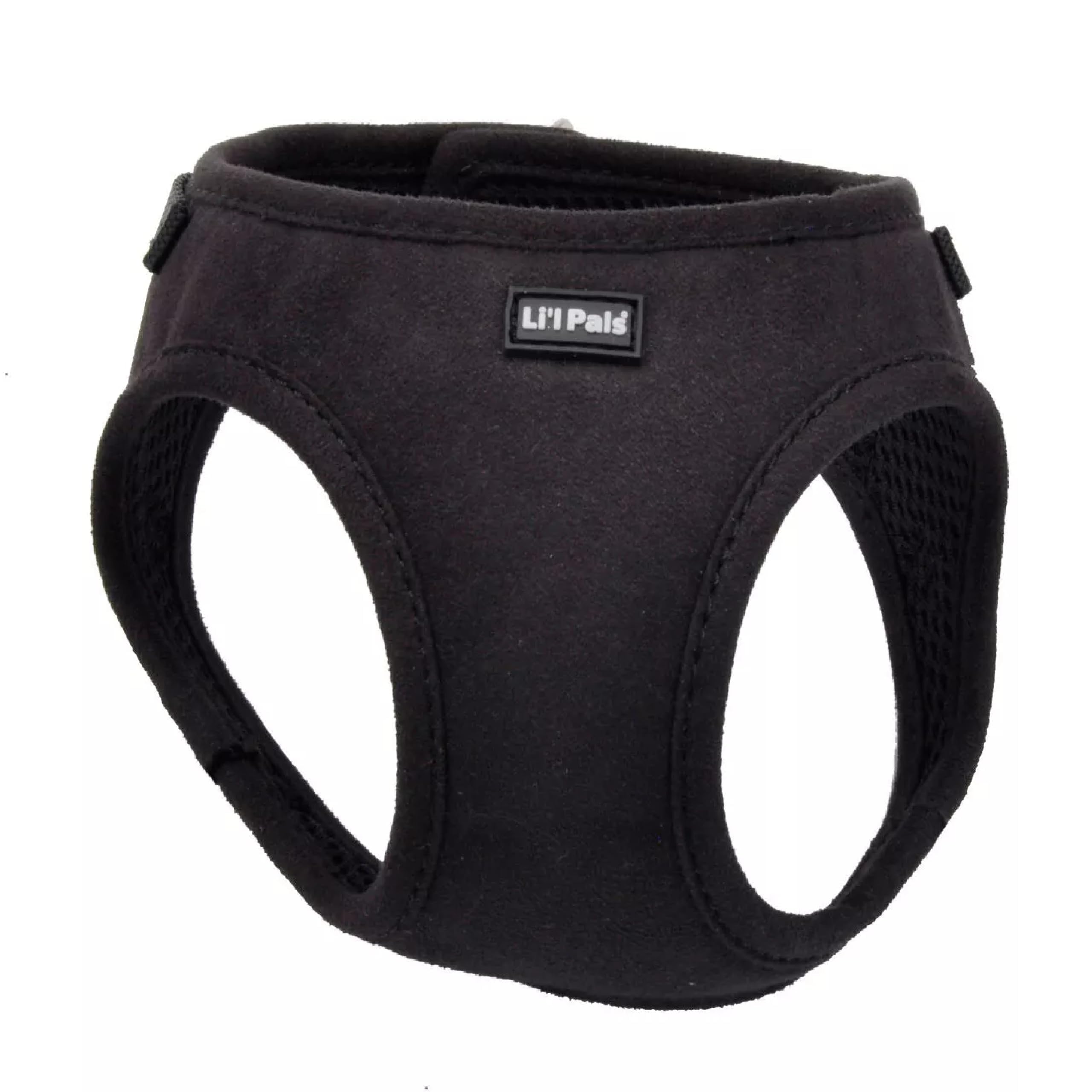Coastal - Li’l Pals Microfiber Dog Harness - Adjustable, Comfortable Design for Small Dogs - Black - 3/8” x 8"-10"