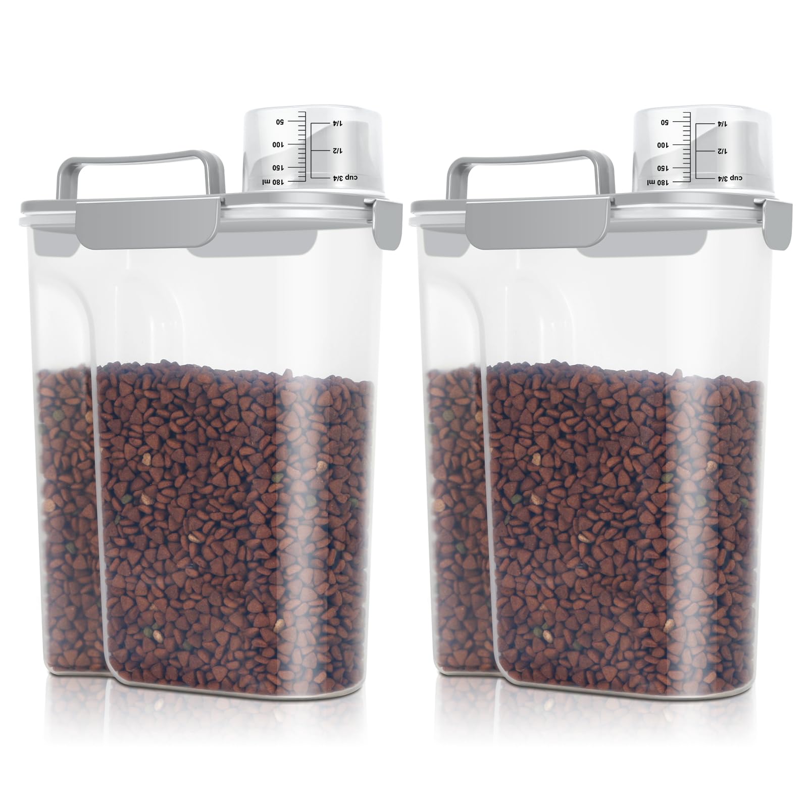 Large Pet Food Container Set: TBMax dog food storage containers come with two 6-qt bins that each one can hold about a 5 to 7 lbs bag of dry dog food or cat food, which depending on the particles of the pet food. Ideal for storing small pet food like kitten puppy kibble, bird seeds, fish food and mo