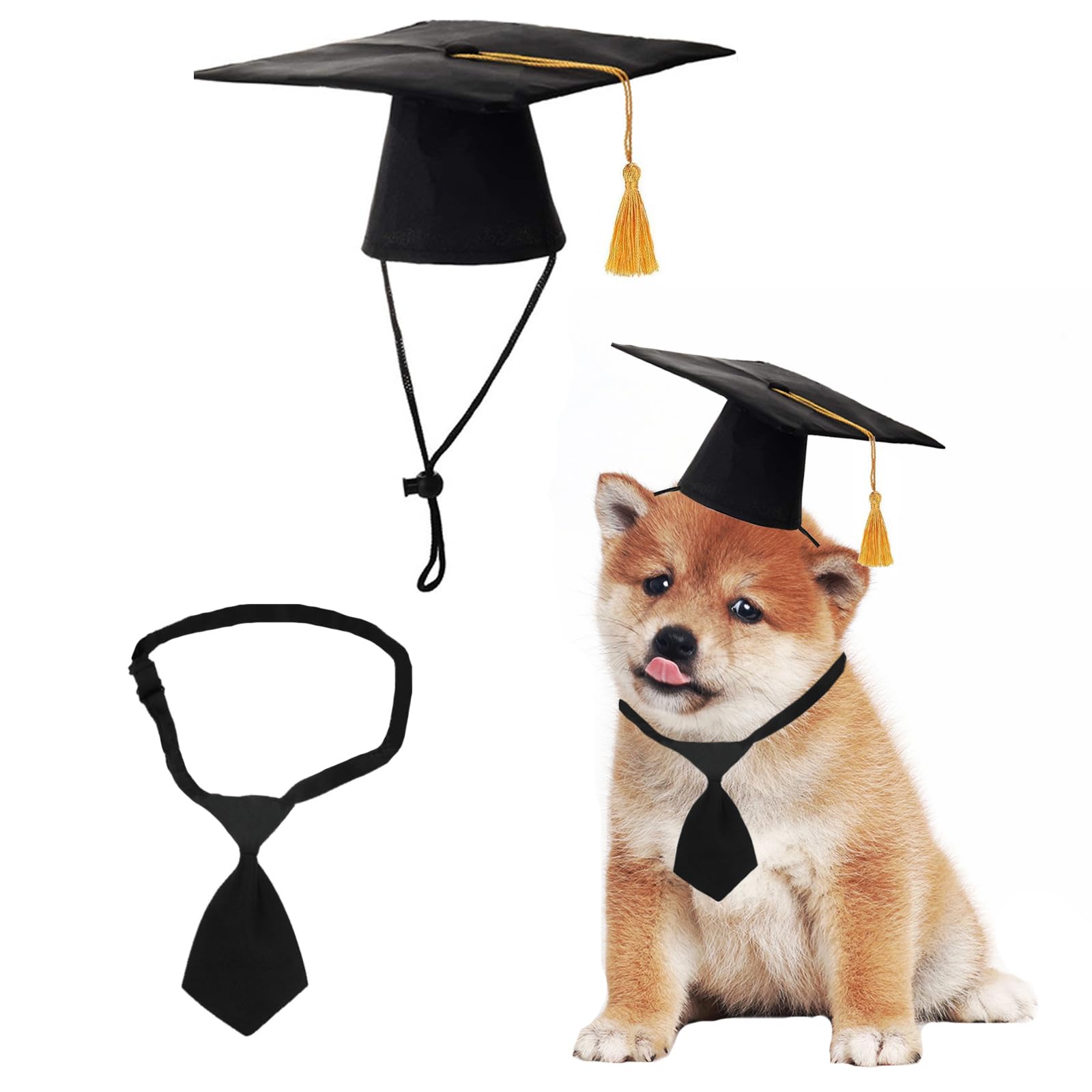 DALJIAFA Pet Graduation Hat Bow Tie Small Dog Cat Graduation Cap Bowtie Puppy Grad Necktie Neck Tie Tassel Hat for Bachelor College High School
