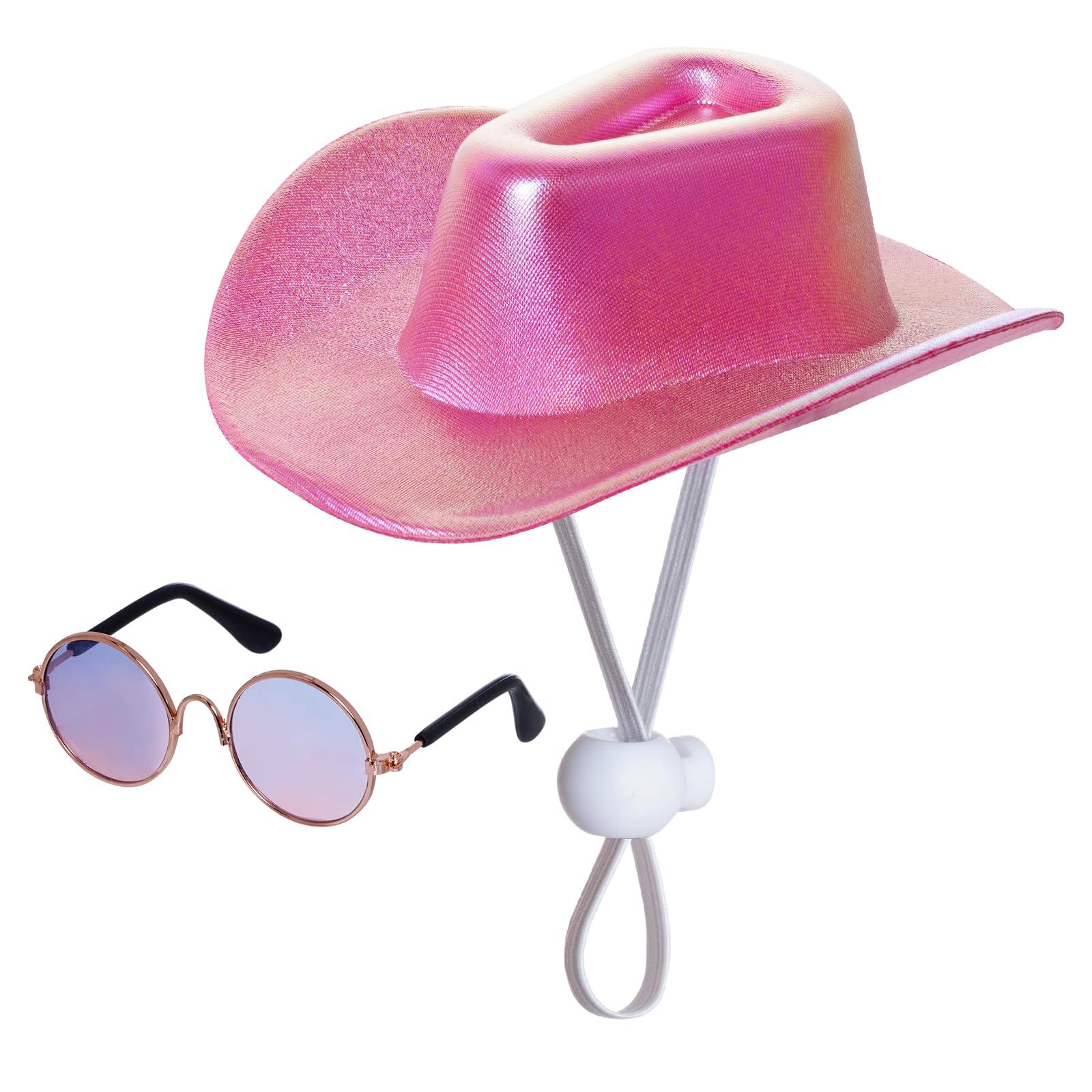 PACKAGE INCLUDED: Our pet cowboy costume set includes a pink cowboy hat and a sunglasses. Pet cowboy hat features an adjustable band to ensure a secure and comfortable fit for various head sizes SIZE INFORMATION: Our cowboy hat measures about 5.1 inches long and 4.3 inches wide. It has a adjustable