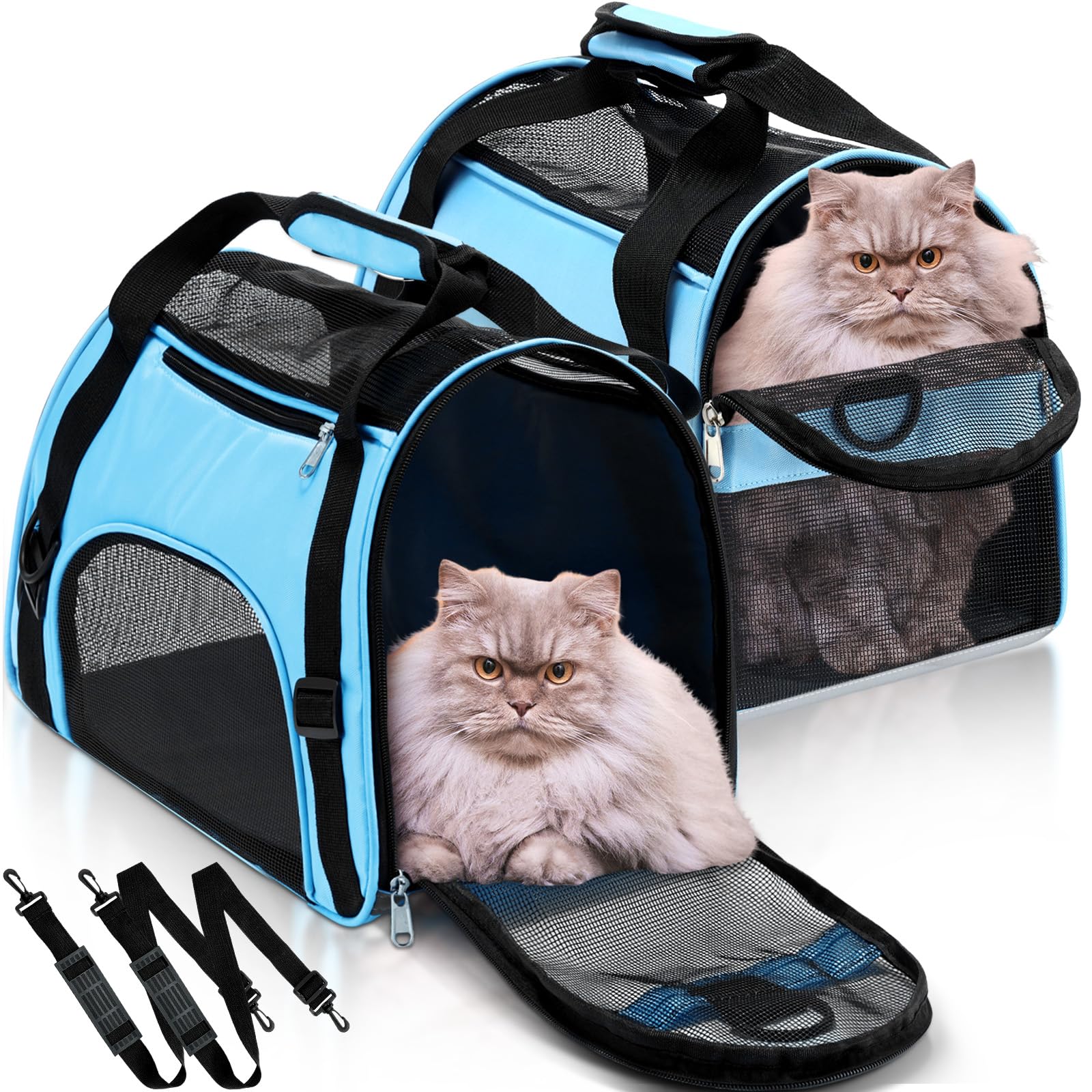 Clysee 2 Pcs Pet Carrier, Soft Sided Pet Travel Carrier for Cats, Airline Approved Kitty Portable Dog Bags for Traveling Little Dogs, Rabbits, Puppy,
