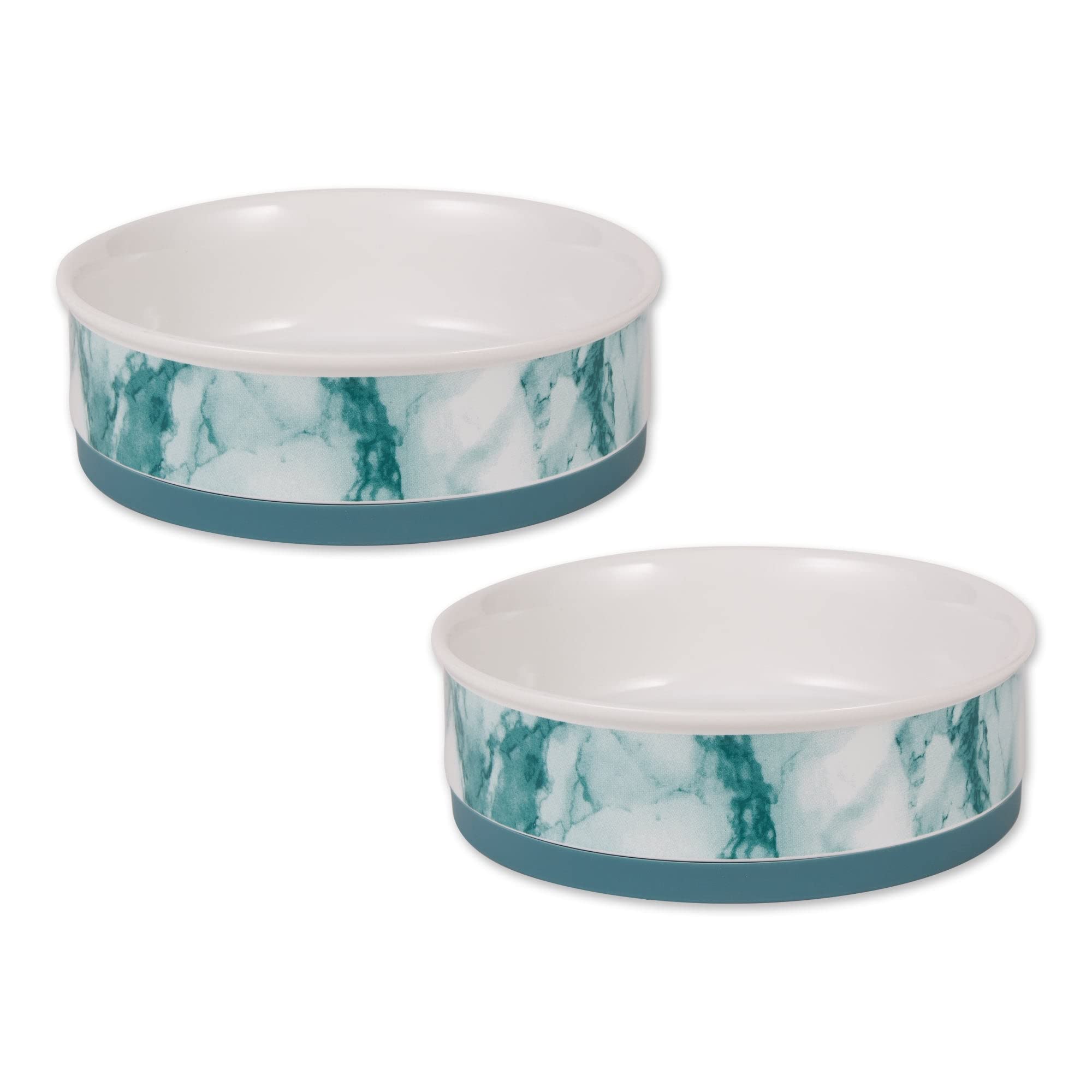 Bone Dry Ceramic Marble Non-Slip Pet Bowls, Dishwasher Safe, Large Set, 7.5x2.4, Teal, 2 Count