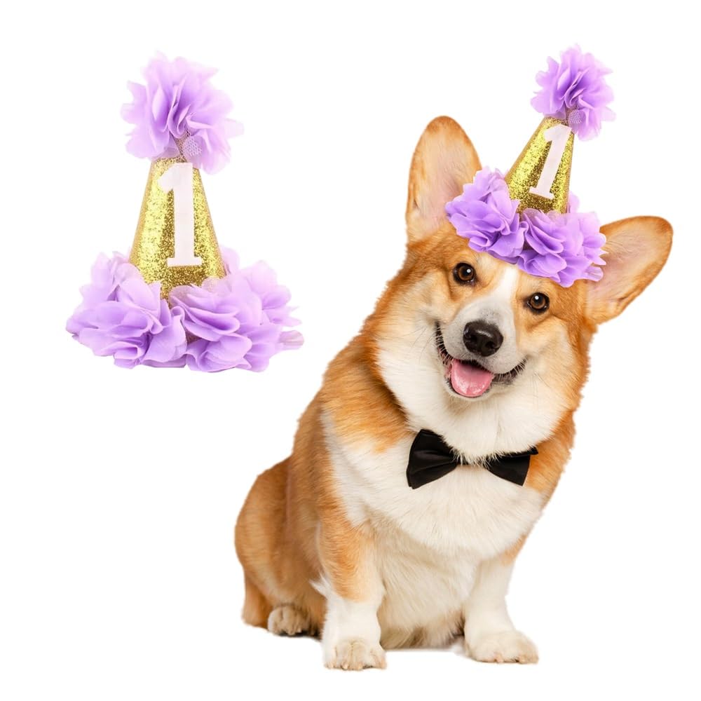 Stock Show 1st Pet Birthday Cone Hat Dogs Cats Holiday Party Hat Headwear Costume with Flowers Accessories and Adjustable Headband for Small Medium