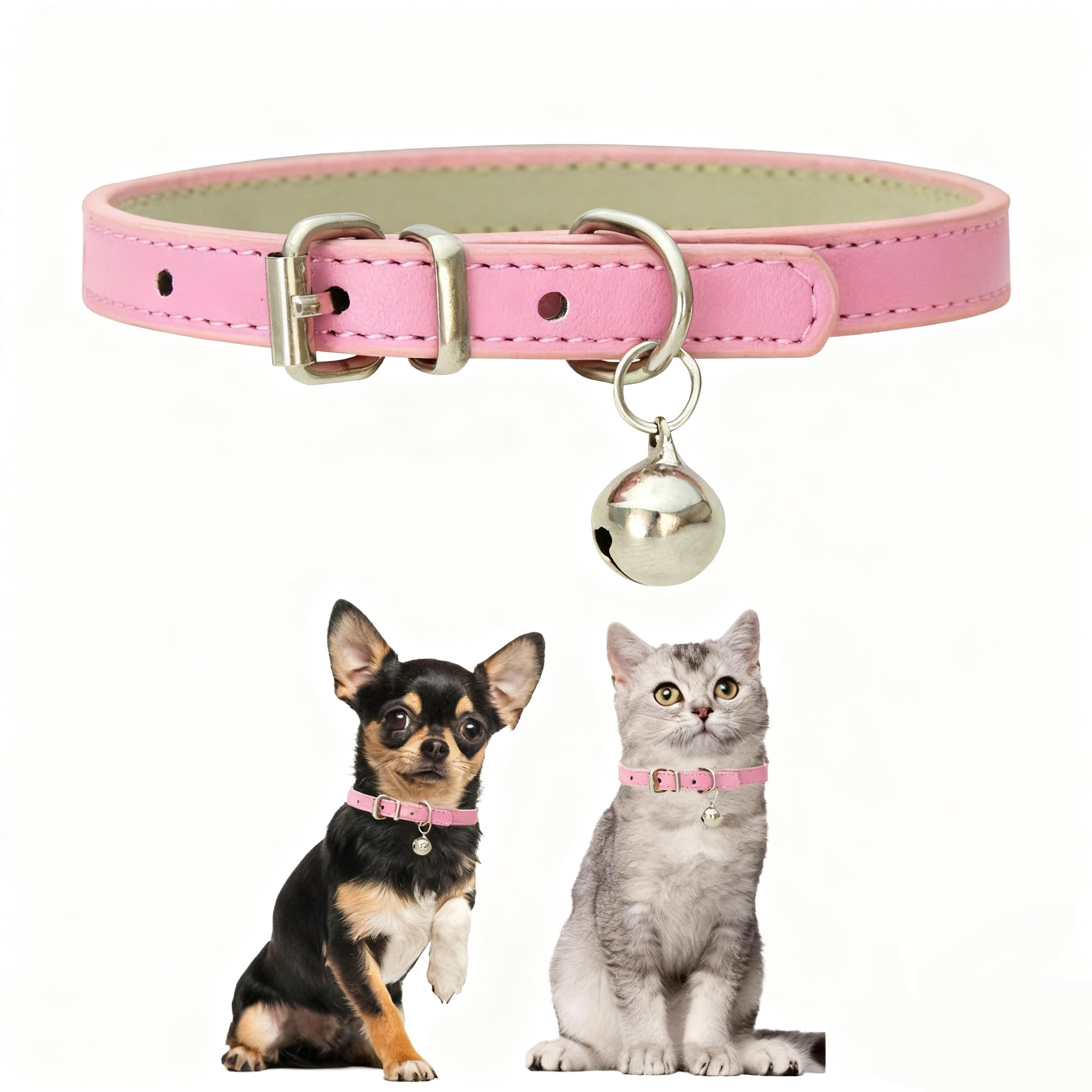 Pink Xs Dog Collar with Bell,Cat Collar with Bell,Soft Pu Leather Puppy Collar Adjustable Buckle for XXS Extra Small Medium Tiny Male Boys Pets Puppy