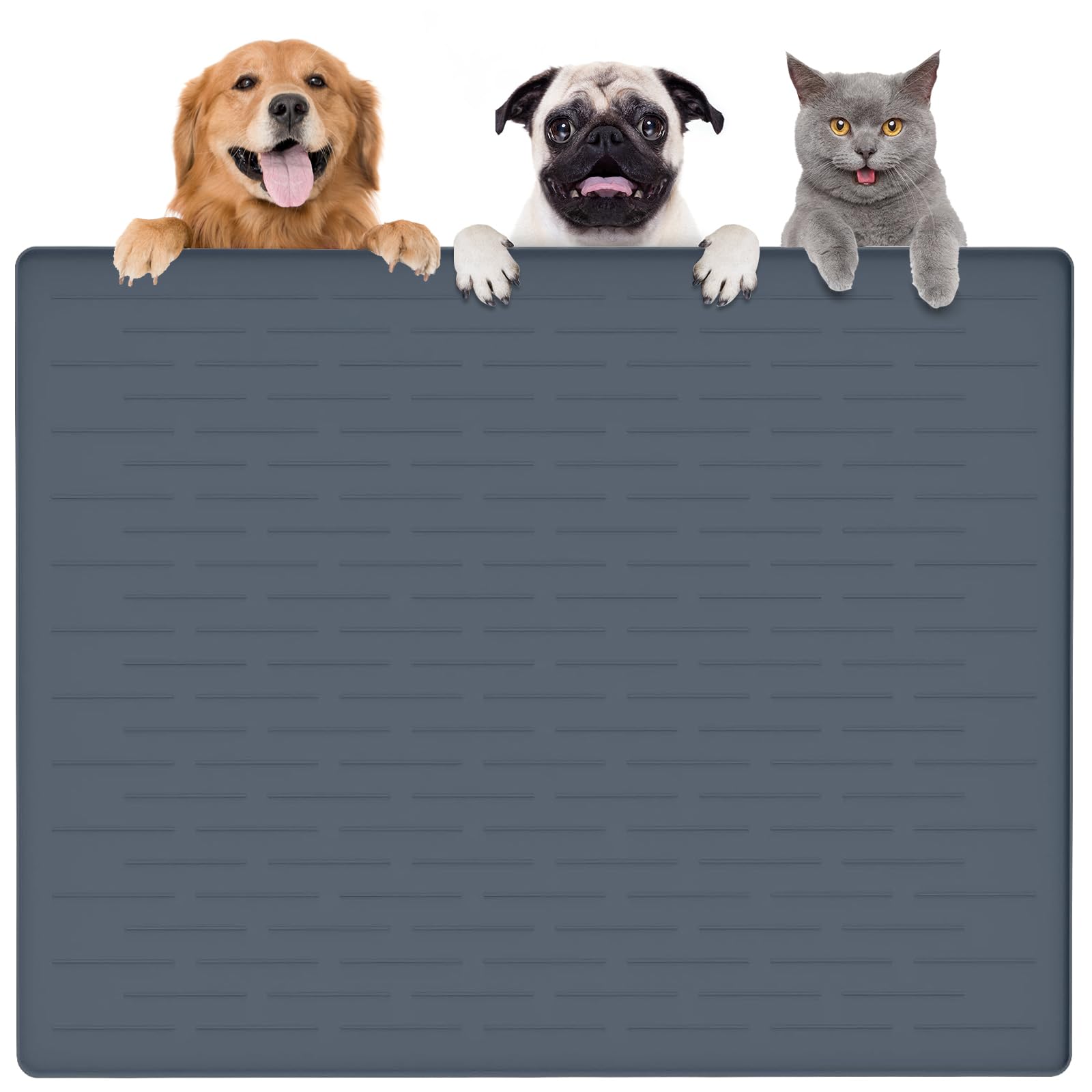 Largest Dog Food Mat, 39.5"x29.5" Silicone Dog and Cat Mat for Food and Water Bowls, Thinken Waterproof Non-Slip XXXL Pet Feeding Mat for Floors (