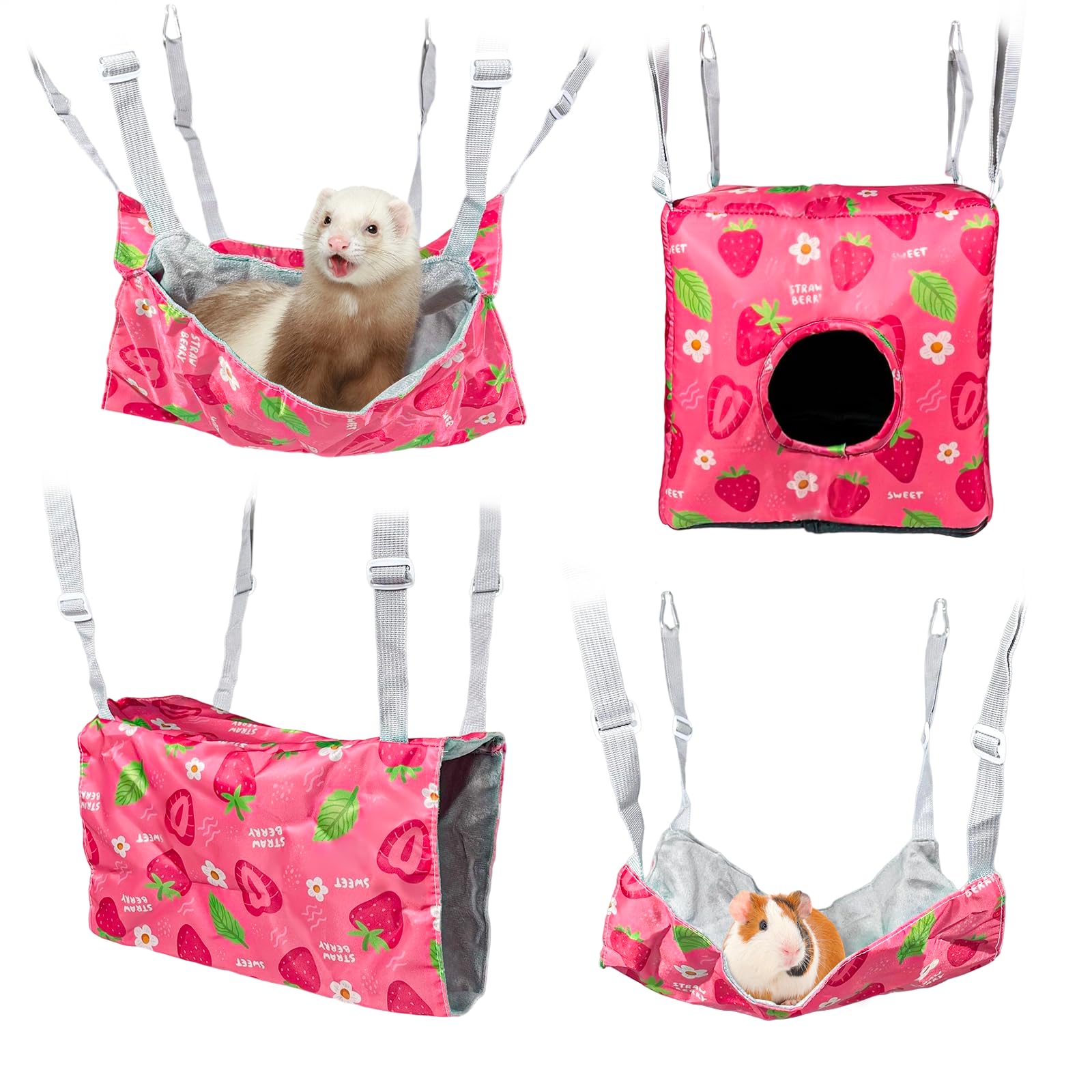 Guinea Pig Cage Accessories: You will receive four pet hammocks in different sizes, each carefully designed with cute and vivid patterns. These charming designs not only add fun but also attract your pet’s attention, making the hammock their favorite resting spot Easy to Install: Our ferret hammoc