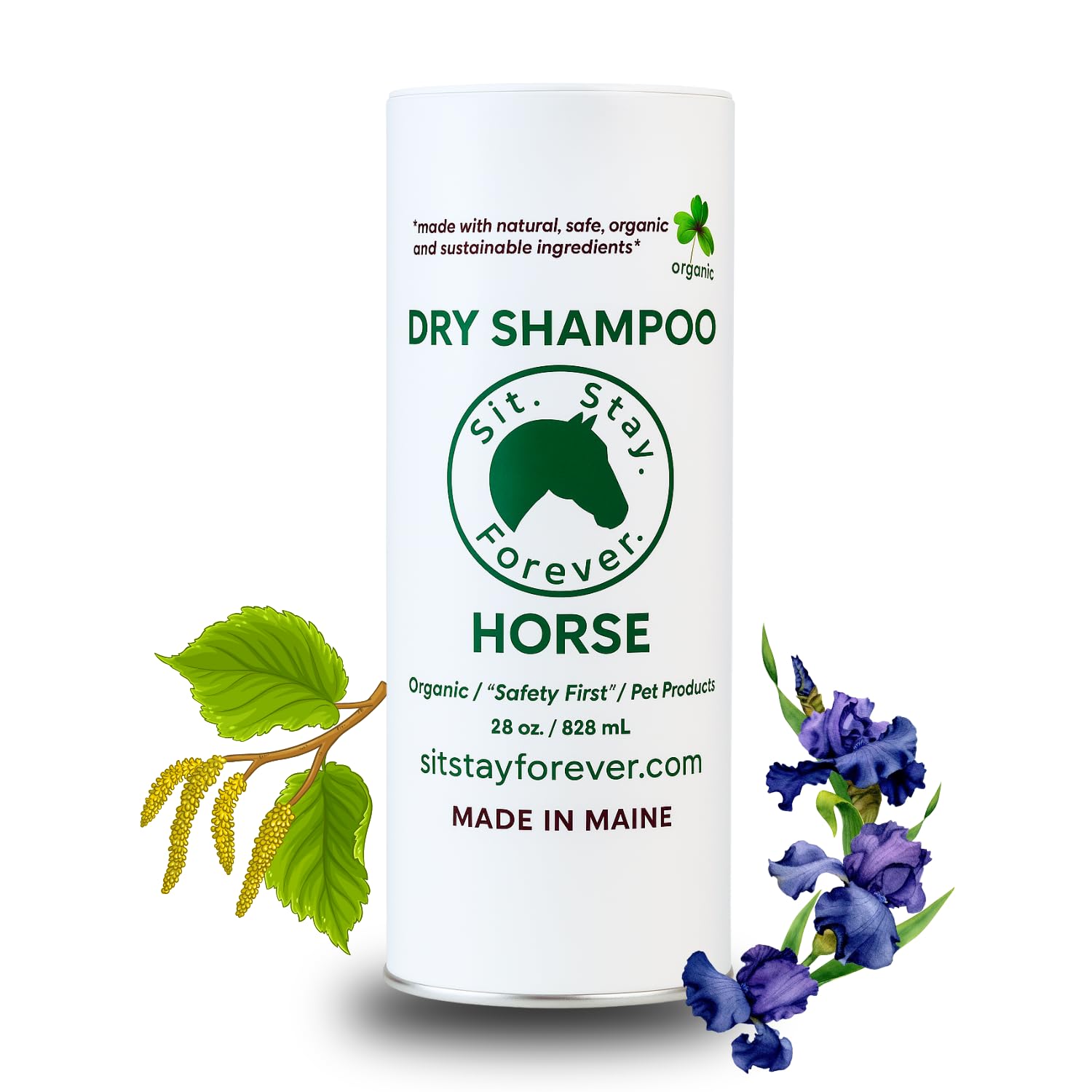 Sit. Stay. Forever. Horse Dry Powder Shampoo for Waterless Grooming and Coat Care and Defense, Organic, Non-Toxic, Talc-Free Formula, Essential Year
