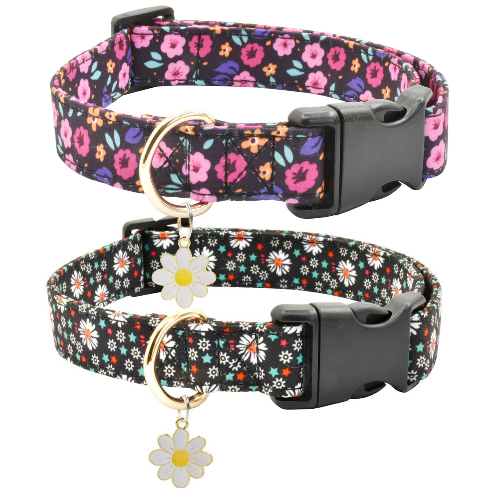 2 PCS Cotton Dog Collar Soft Cute Flower -3 Sizes Soft Nylon Puppy Collar Adjustable for Girl Female Small Medium Large Dogs (Flower-4, L(15-23in)