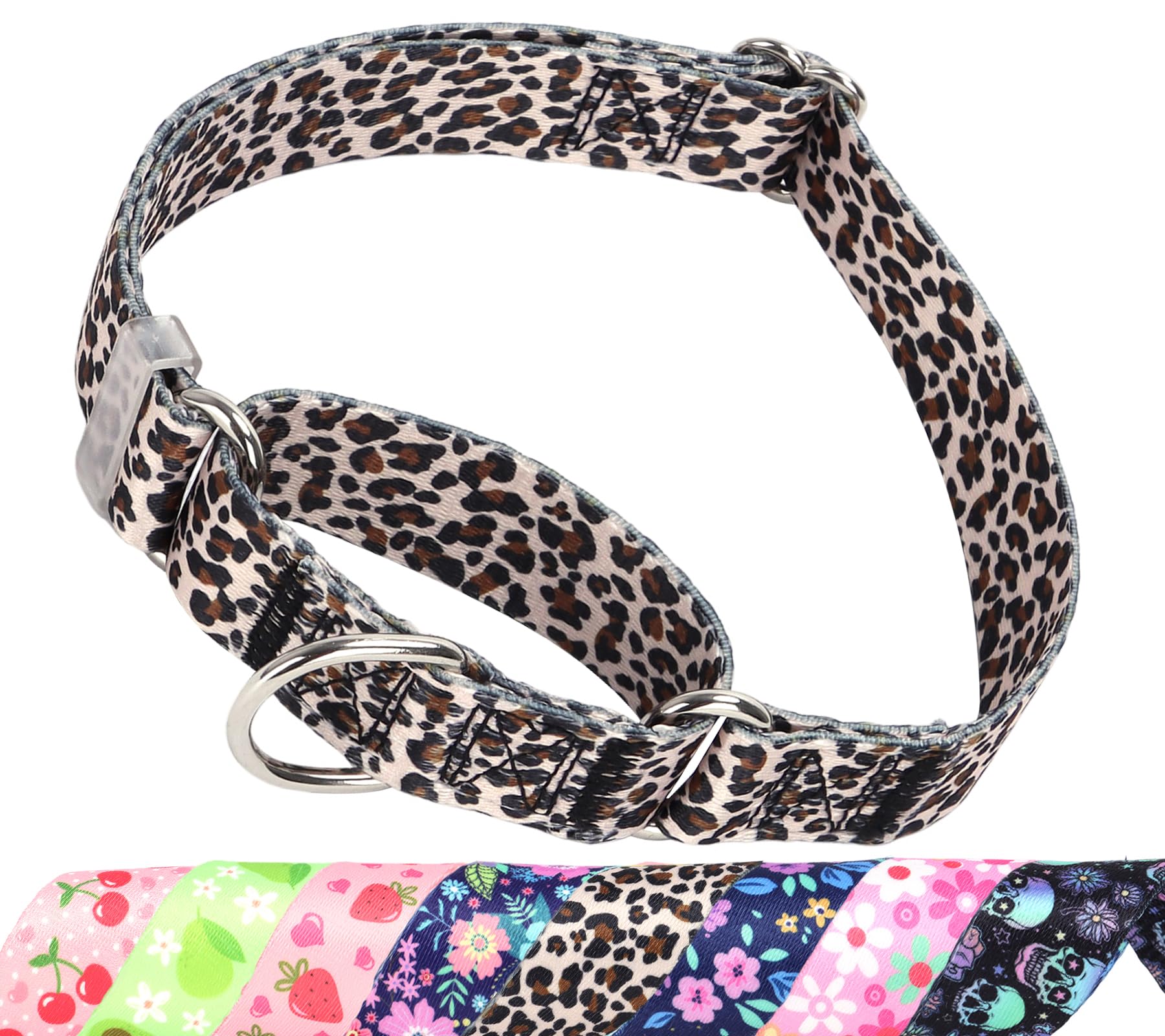 Leopard Martingale Collar for Dogs, No-Slip Escape Proof Choke No Pull Cinch Soft Nylon Dog Training Collars Adjustable for Small Medium Large Breed