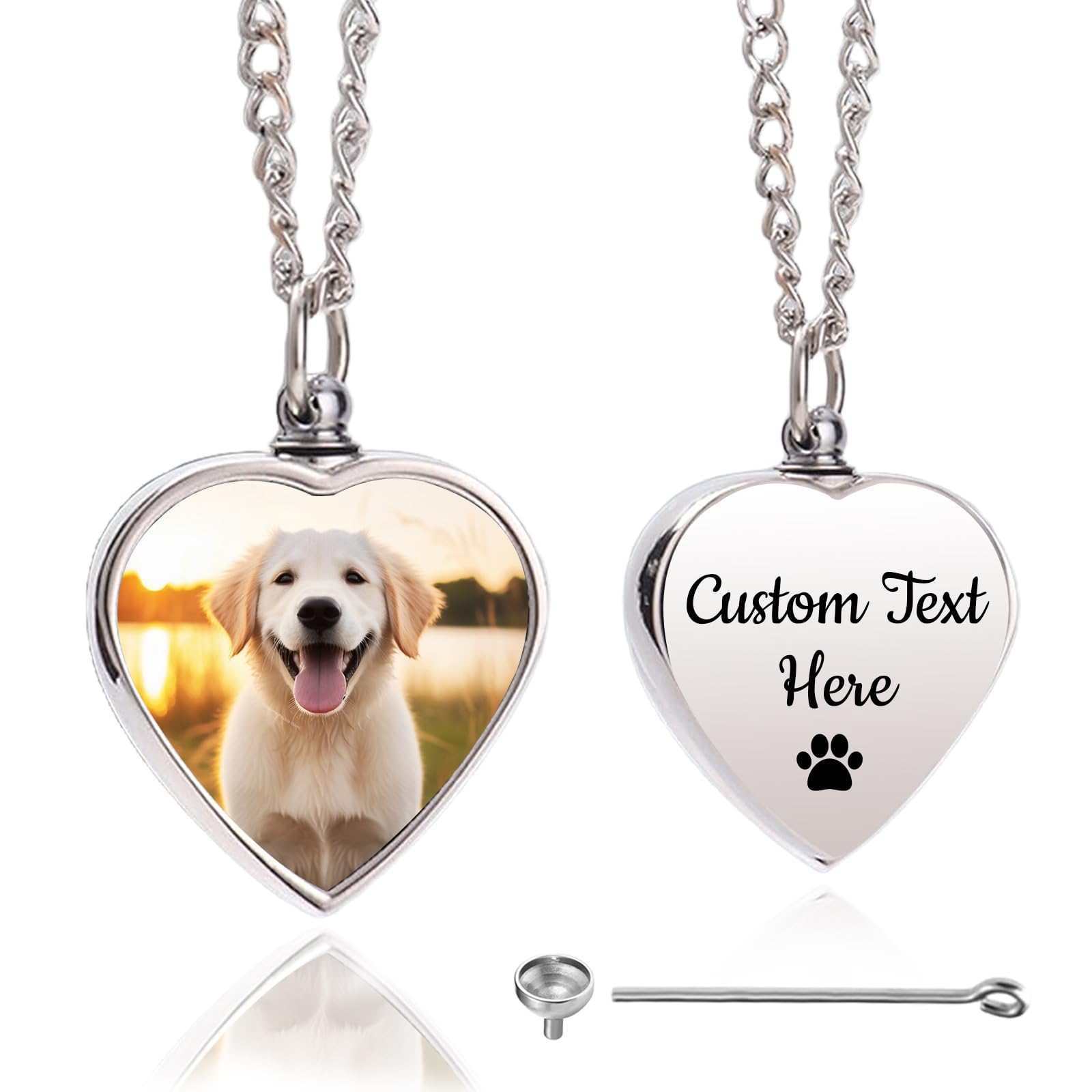 Cupike Personalized Pet Urn Necklace for Dog Ashes Custom Engraving Photo Text Pet Cremation Jewelry Customize Memorial Gift for Pet Dog Cat Ashes