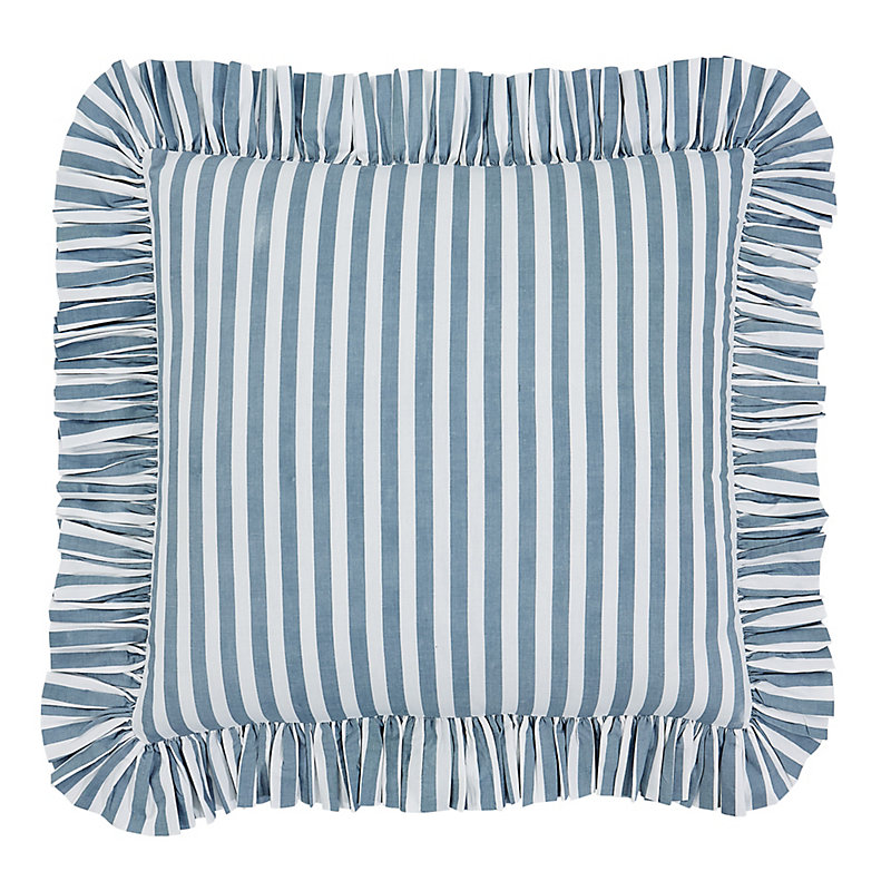 Classic Stripe Ruffled Pillow Cover - Indigo 20" x 20" - Ballard Designs