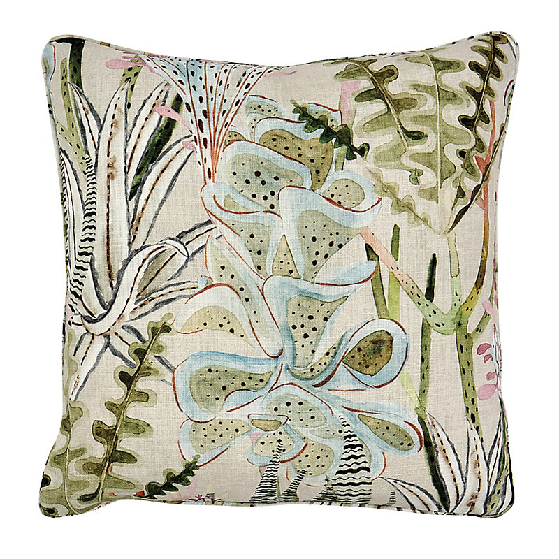 Our whimsical Freya Pillow Cover is brimming with life and color. The magical, undersea floral motif is printed on soft 100% cotton in fresh watercolor hues of green, mineral, coral pink, orange, and inky black. This show-stopping accent pillow will...