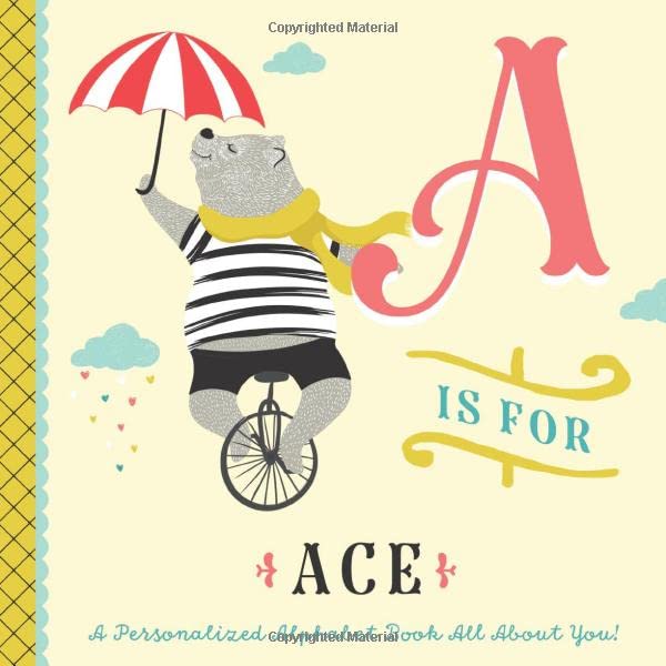 A Personalized Alphabet Book with Ace’s Name! A is for amazing, that’s Ace in every way! B is for the special way you brighten up each day. C is for your courage. You don’t fear what to do. D is for your daring. You always carry through. Ace is your pride and joy—and now t