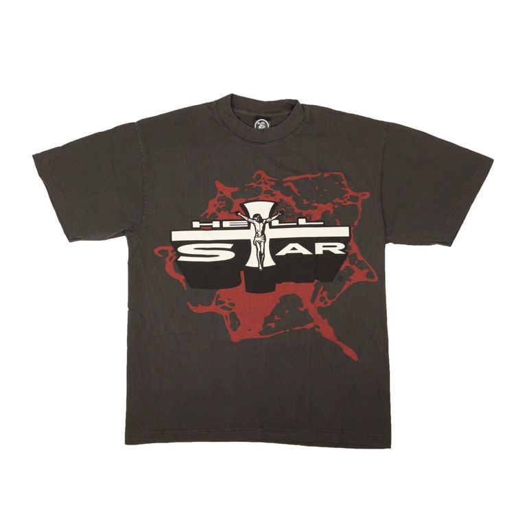 Men's HELLSTAR STUDIOS Path To Paradise Short Sleeve T-Shirt - Black - Short sleeve t-shirts Men's T-Shirt Dark Grey Short Sleeves Multicolor Graphic Print Ribbed Mock Collar 100% Cotton