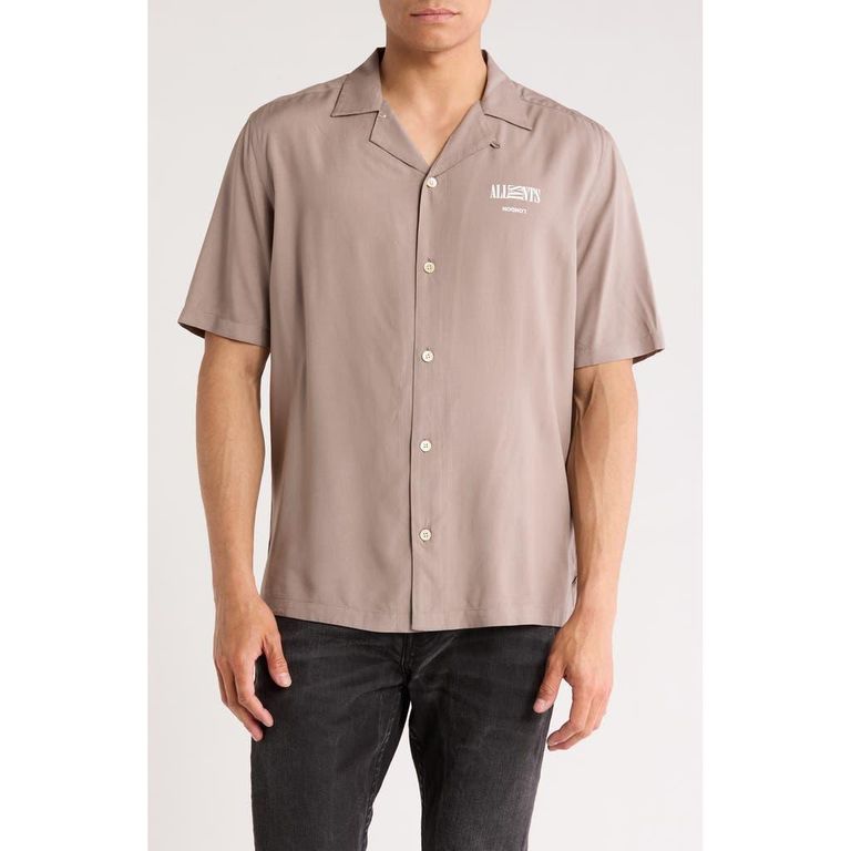 Men's AllSaints Burman Camp Shirt - Brown - Casual shirts Lightweight fabric gives an easy fit to this branded camp shirt cut with a relaxed fit that expertly mixes comfort and style. Front button closure Notched collar Short sleeves 100% viscose...