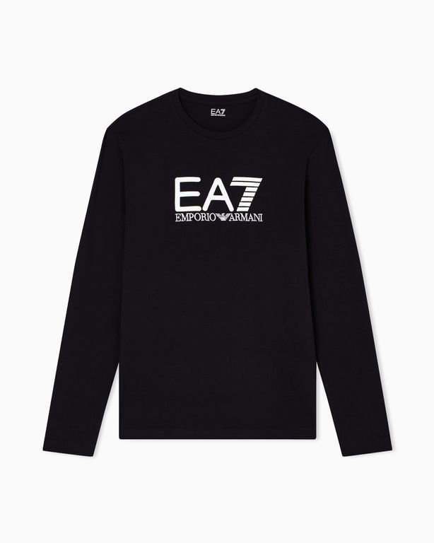 Men's EA7 Visibility Long-Sleeved T-Shirt - Black - Long sleeve t-shirts Long-sleeved crew-neck T-shirt that combines simplicity and style thanks to its minimalist design and monochromatic logo, for a subtle yet distinctive look. Made from cotton...