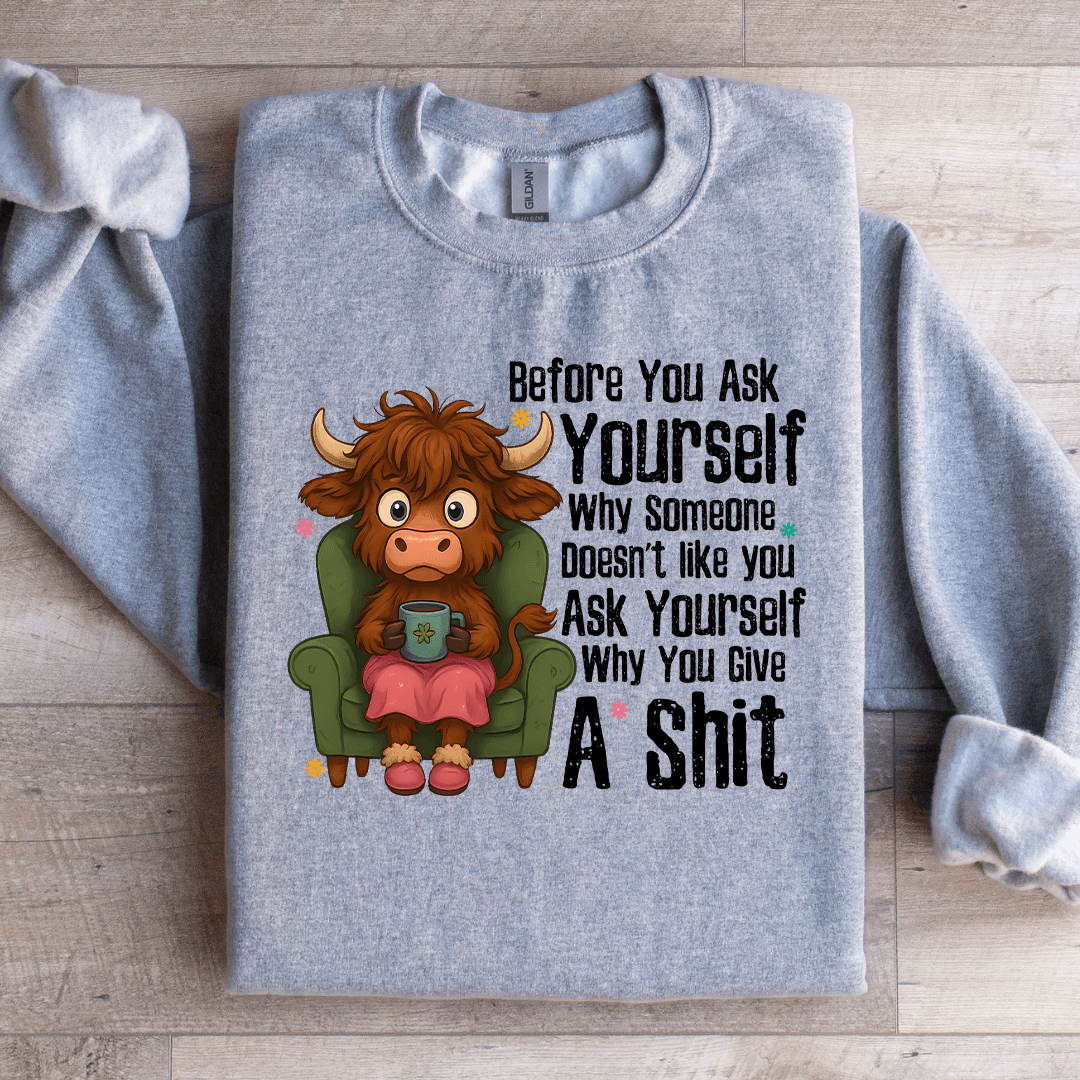 "Before You Ask Yourself Sweatshirt"Sometimes, the most important conversations are the ones we have with ourselves. The Before You Ask Yourself sweatshirt is a reminder to trust your instincts and take control of your thoughts before you let others...