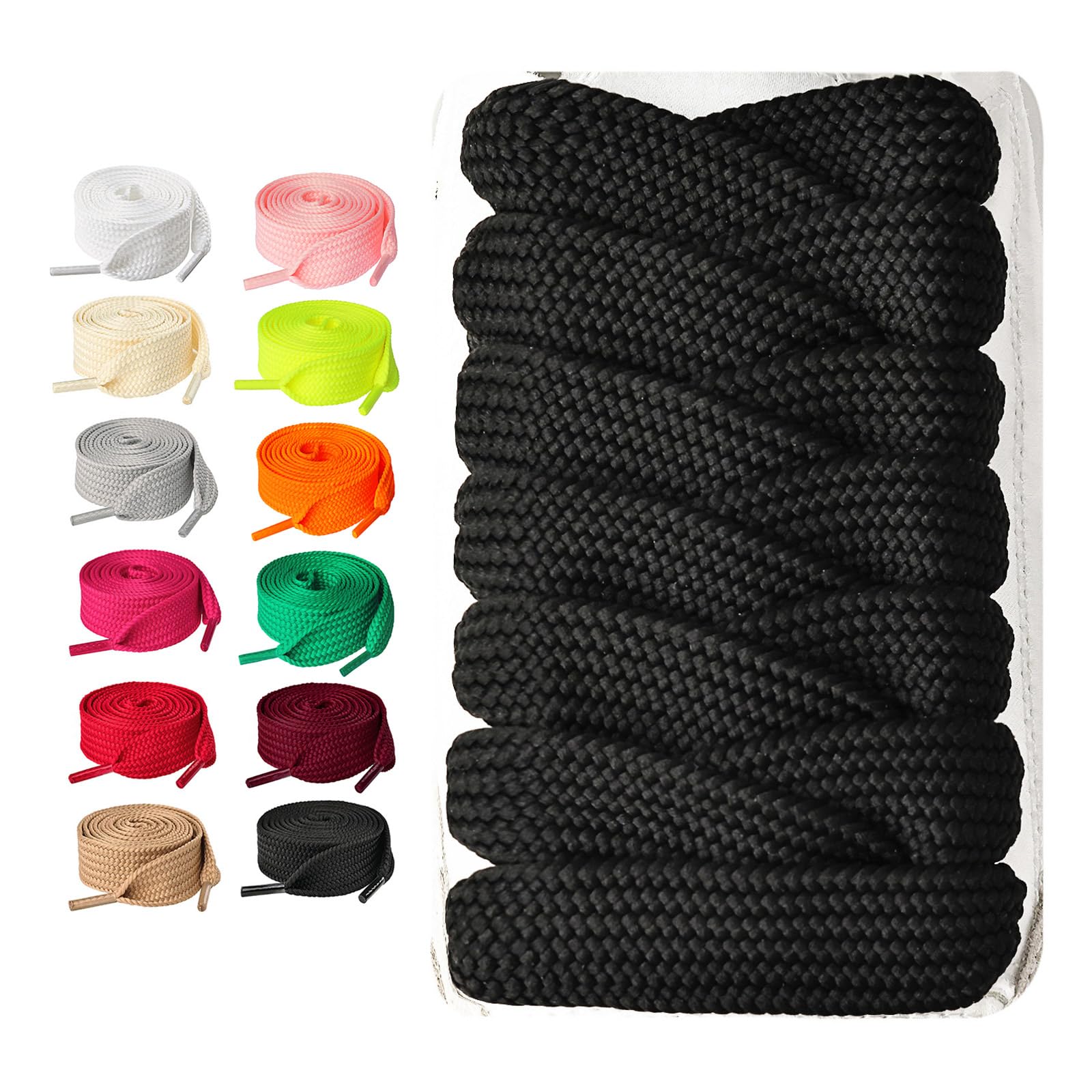 Package Includes: 2 pairs of fat black shoe laces(4 laces in total); Width: about 3/4" (2cm); Versatile Use: Great fat shoe laces for sneakers, athletic shoes, sports shoes, running shoes, tennis shoes, kids shoes, high tops, casual shoes, canvas shoes or boots Old School Look: Vintage Retro 80s Loo