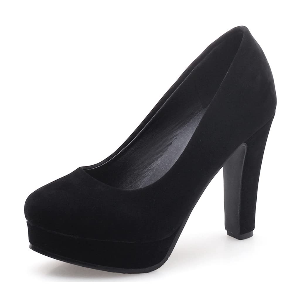 ➤FIT MEASUREMENTS】: 3.93" Chunky High Block Heel; High-Quality Vegan Suede Upper Material; Cozy Breathable Microfiber Lining. ➤FINEST QUALITY & COMFORTABLE】: Womens Ladies Round Close Toe Platform Formal Pump Shoes, Simple Sleek vamp;Slip On Easy On/Off; Anti-slip Lightweight, High Strengt