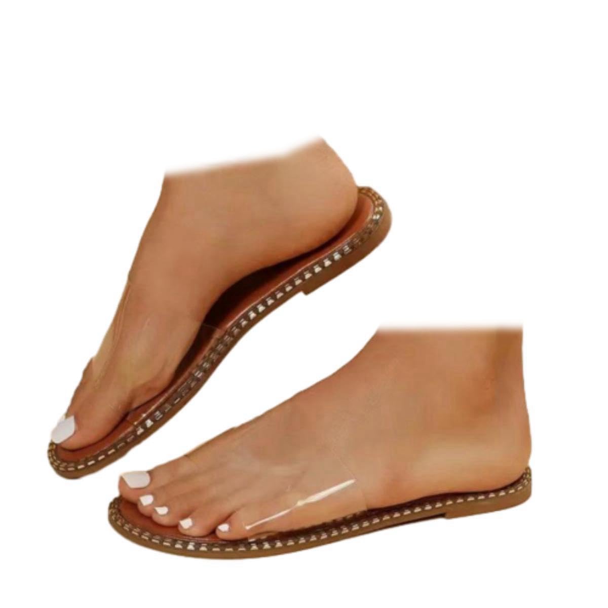 Generic Women's Clear Flat Sandals Transparent Summer Slide Sandals for Women Dressy Outdoor Flat Sandals