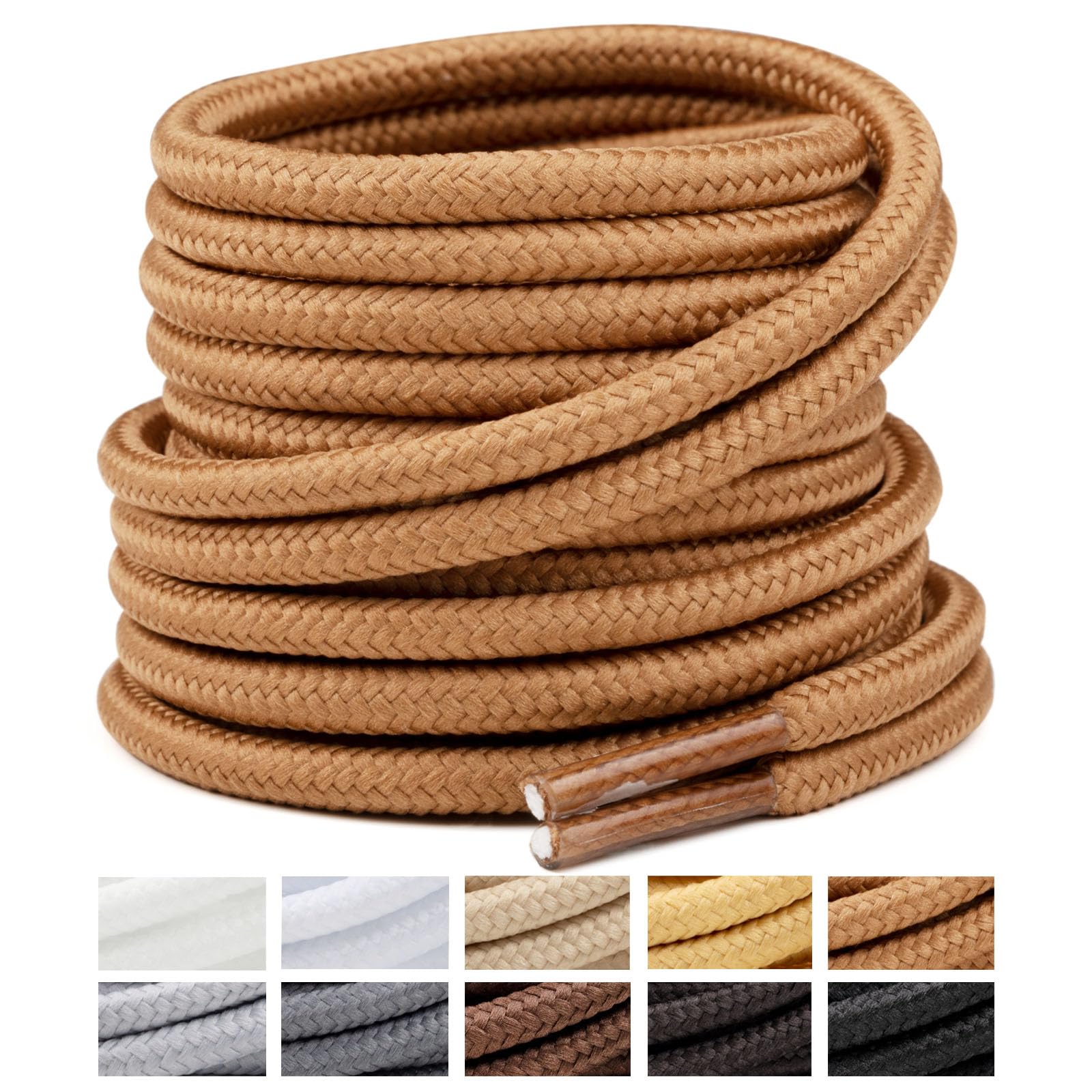 Handshop 2 Pairs Round Boots Shoelaces Heavy Duty Outdoor Shoe Laces 30-63” Shoestrings For Hiking Sporting Running