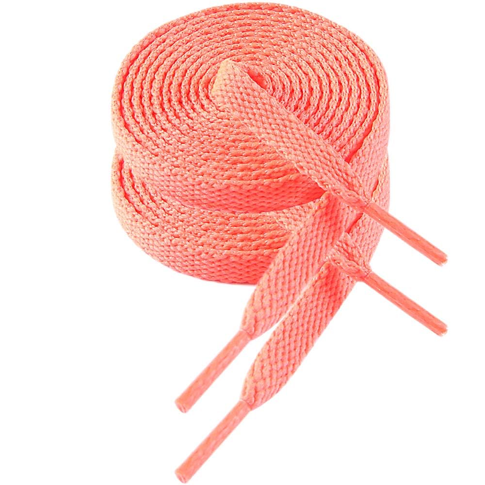FASHIONABLE FLAT SALMON PINK SHOE LACES FOR SNEAKERS: A new right color and length premium shoelaces for sneakers will give your favorite sneakers or canvas shoes a new look and bring your shoes much more individual character. HIGH QUALITY AND HIGH DURABILITY: Excellent material, strong braided cons