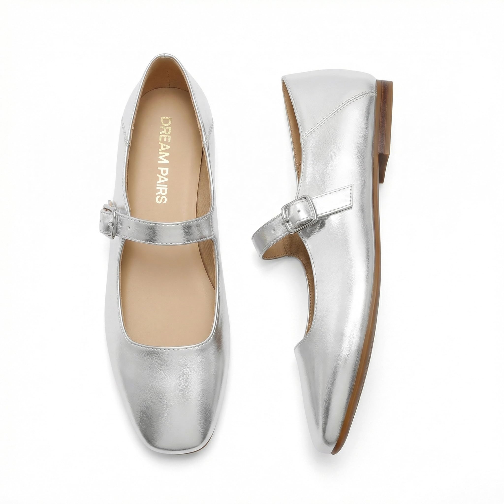 DREAM PAIRS Women's Flats Square Toe Mary Jane Flats Comfortable Casual Dress Shoes Ballet Flats with Buckle Strap Casual Work Office Mary Jane Shoes