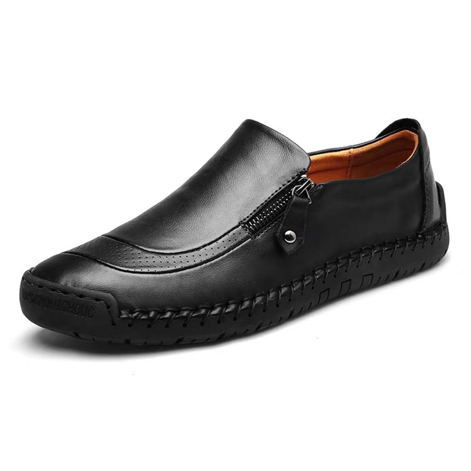 NIGXWNS Dress Shoes for Men Lightweight Zipper Slip on Flat Driving Loafers Vintage Walking Slip-on Casual Wedding Oxfords