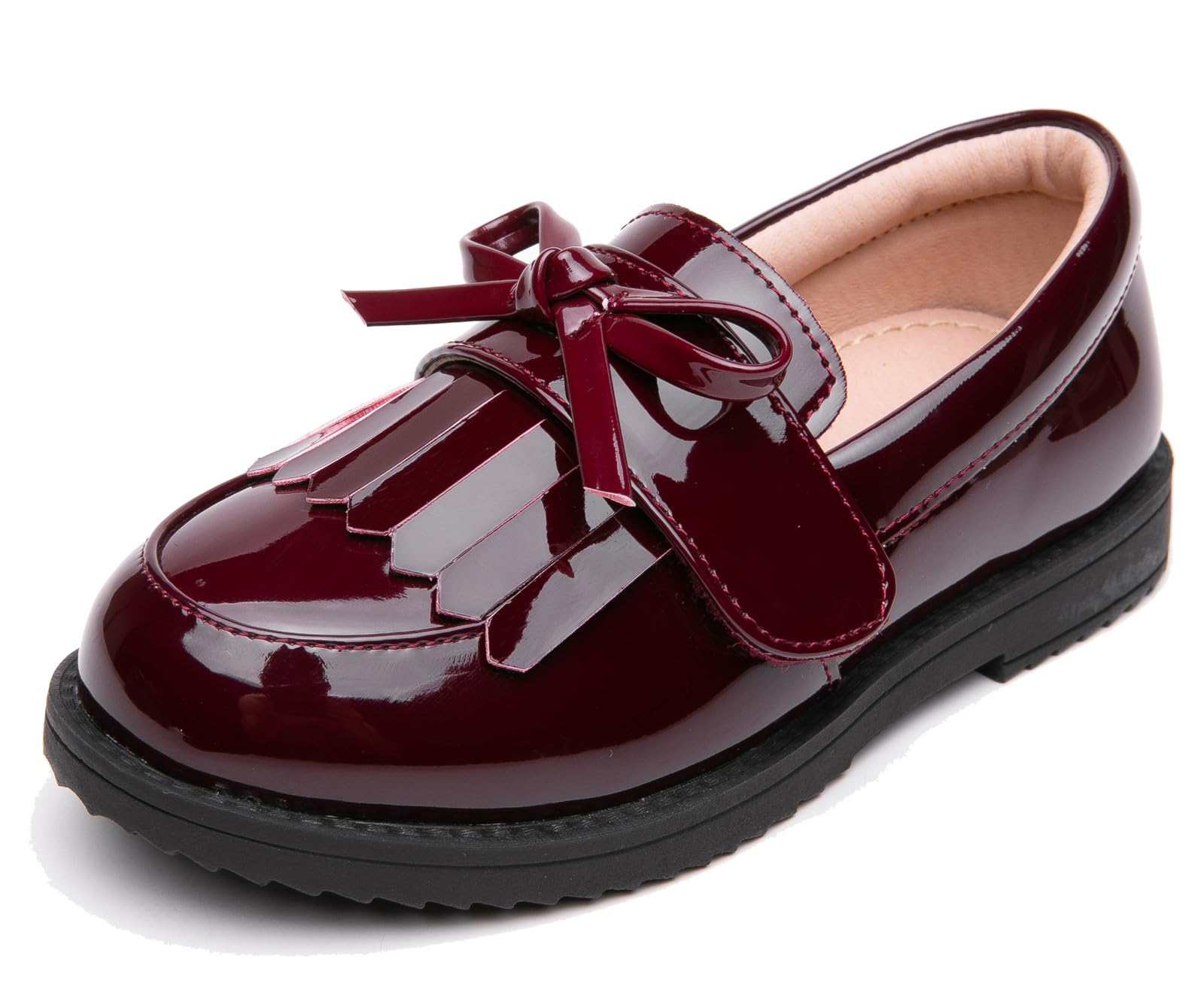 【Fashionable style】: Fashion girls' loafers have a patent leather upper with round toe and exquisite tassels design, adding style while offering comfort, Our leatherette dress shoes for girls will make your girl look super cute and stand out wherever she goes. 【Convenient Loafers Shoes】: Loa