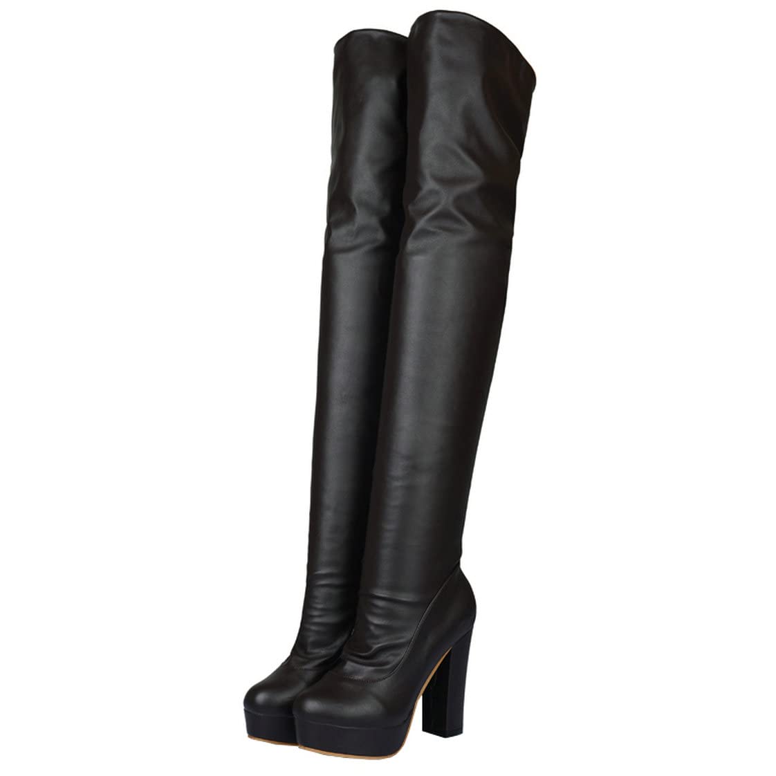 BEAUPAS Women's Chunky Heel Platform High Heel Thigh High Boots Block Heel Over The Knee Boots Round Toe Gothic Shoes