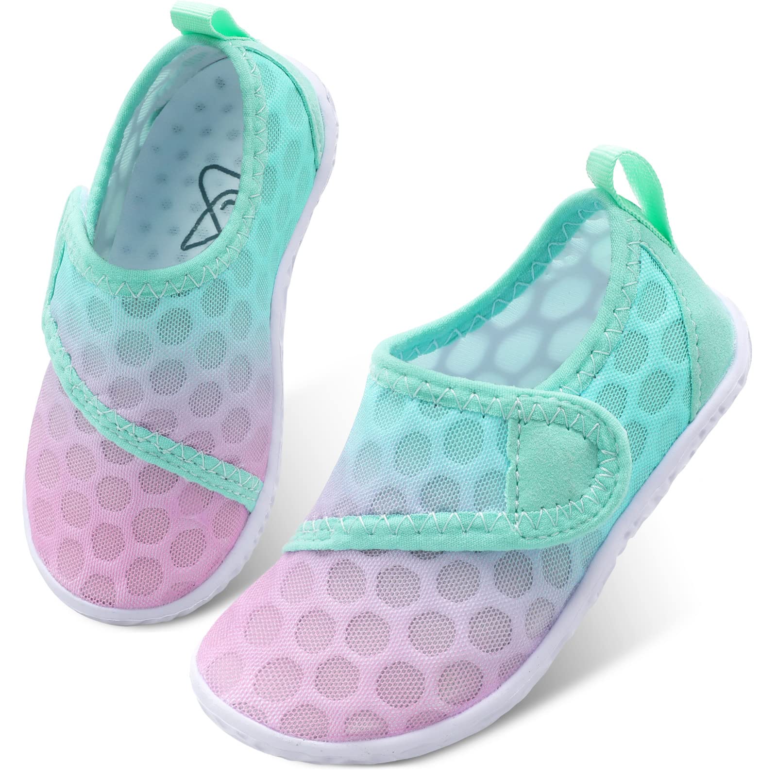 Comfy Quick-dry Water Shoes: Great stretchy upper material with honeycomb EVA insole, which is skin-friendly soft and breathable, speeds up the evacuation of moisture from the water sport shoes to keep toddlers'feet comfortable and dry. Lightweight Senseless Beach Shoes: 36g each shoe, not bulky, su