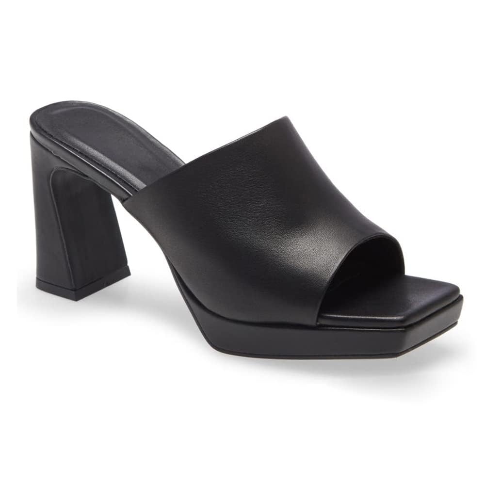 Trish Lucia Womens Platform Chunky Heels Mules Square Open Toe High Heeled Sandals Slip On Slides Dress Shoes