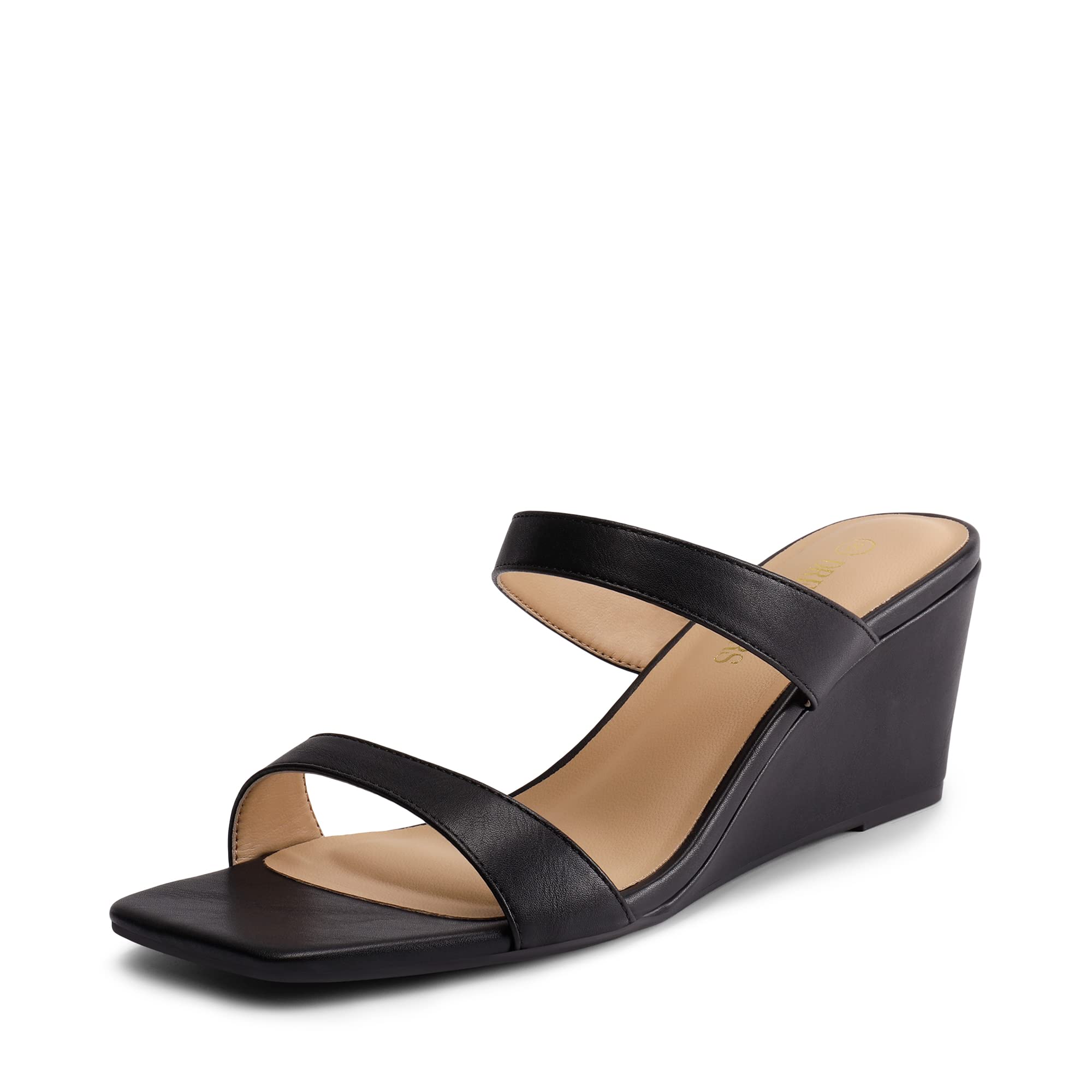 DREAM PAIRS Women Slides Wedge Sandals Square Open Toe Dress Casual Strappy Shoes