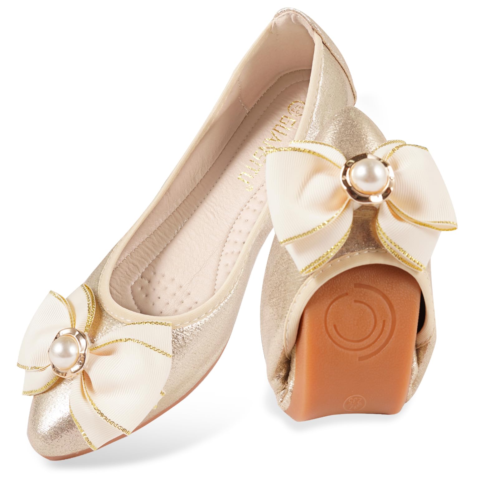 YOUNIFIZ Women's Flats, Foldable Ballet Flats for Women, Fashion Bow Tie Pionted Toe Comfort Lightweight Slip-On Dress Shoes