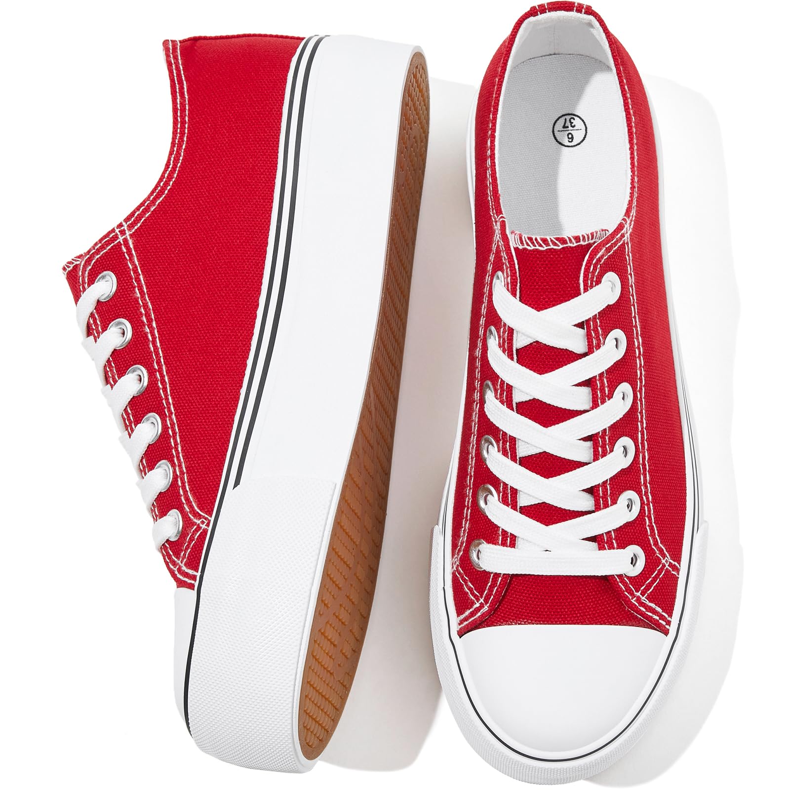 【Adding Height】:Platform Sneakers for women with 1.61 inch platform,you will look taller when you put on the platform shoes 【Breathable Upper】:The lace up platform shoes use breathable canvas upper,so your feet will not feel stuffy. Non-slip Sole】:Non-slip rubber sole makes the women's cas