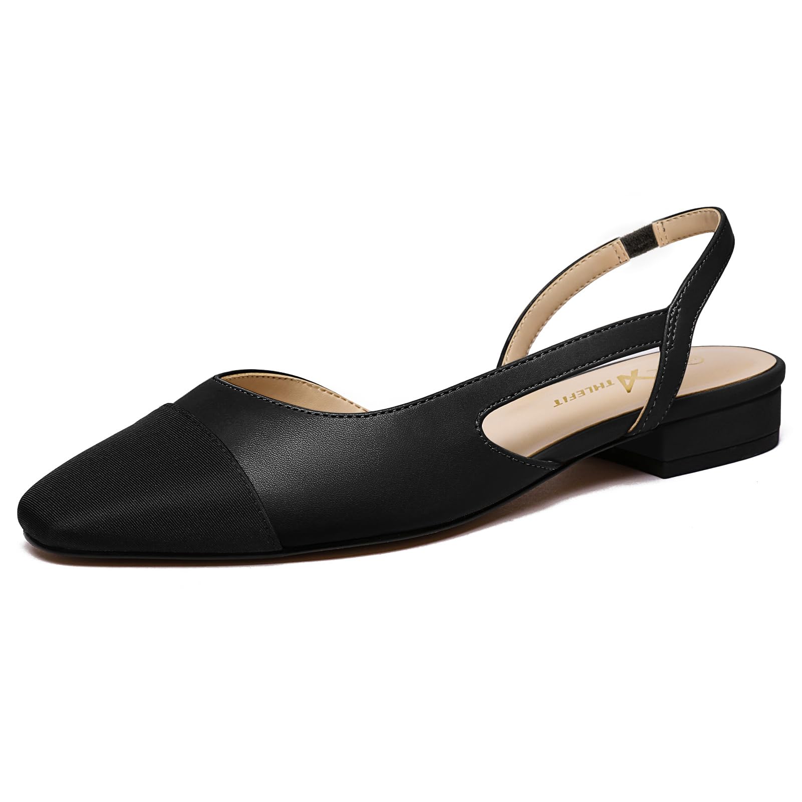 Classic Style: These slingback flats for women feature a refined two-tone upper blending PU leather with the fabric black toe, creating a polished look that elevates both office wear and weekend outfits Slingback Design: Women's slingback flats feature a convenient slingback design for easy on and o