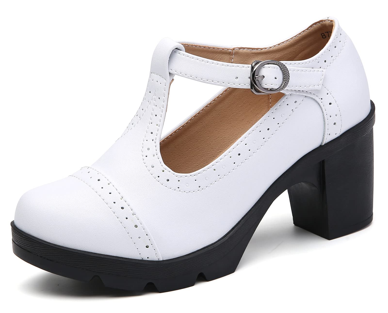 【COMFORT STRUCTURE】: Heel measures approximately 2.75", Platform measures approximately 1.15" 【A CLASSIC DESIGN】: The incredible T-strap pumps are bound to be timeless, as they feature a simple design of a round toe,convenient buckle and a chunky heel 【RELAXED FOR ALL-DAY】: These pumps p