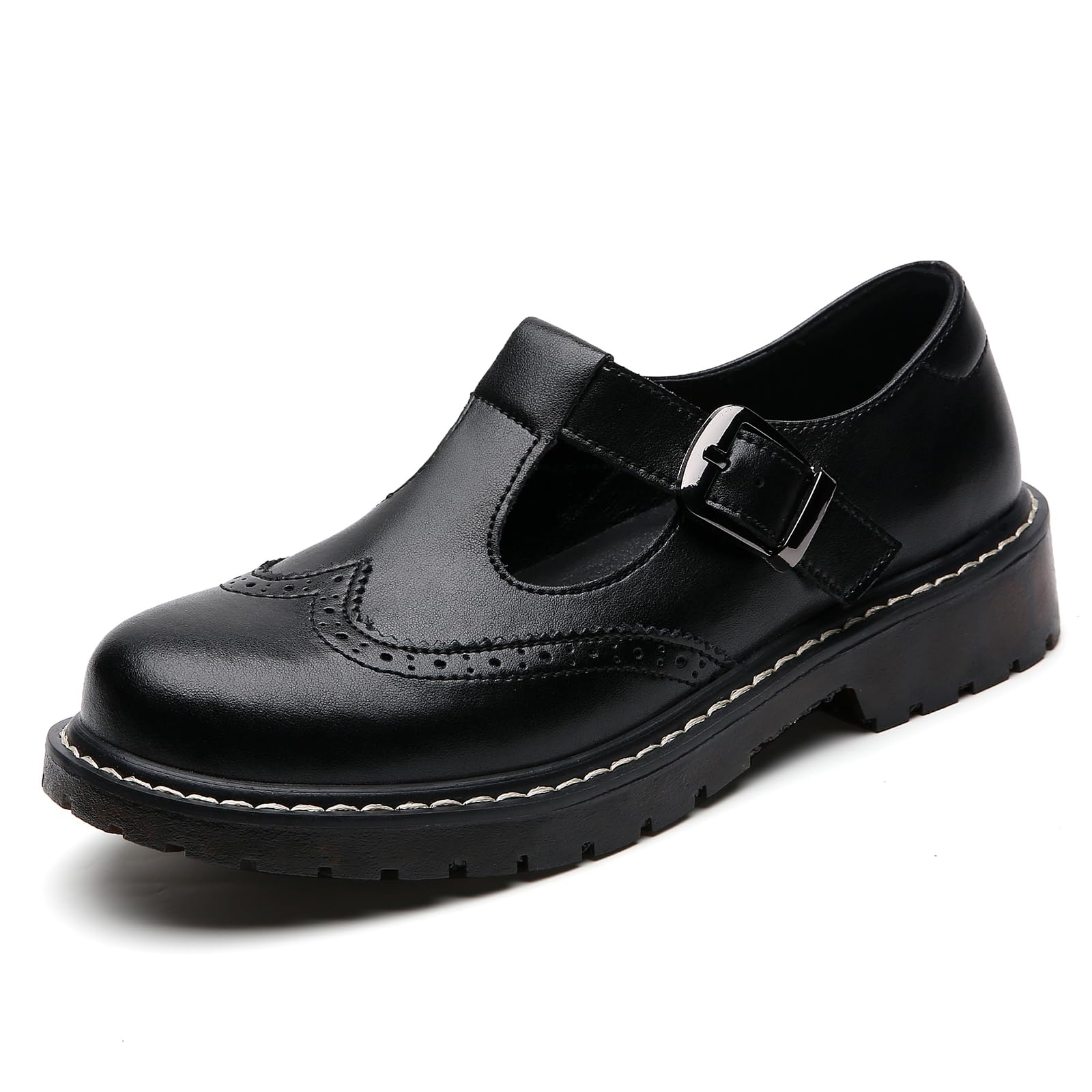 XMM Mary Jane Shoes Women Oxford Shoes Leather Round Toe Flats Non-Slip Ankle Buckle Strap Comfort Casual Dressy Cosplay Party School Work Shoes