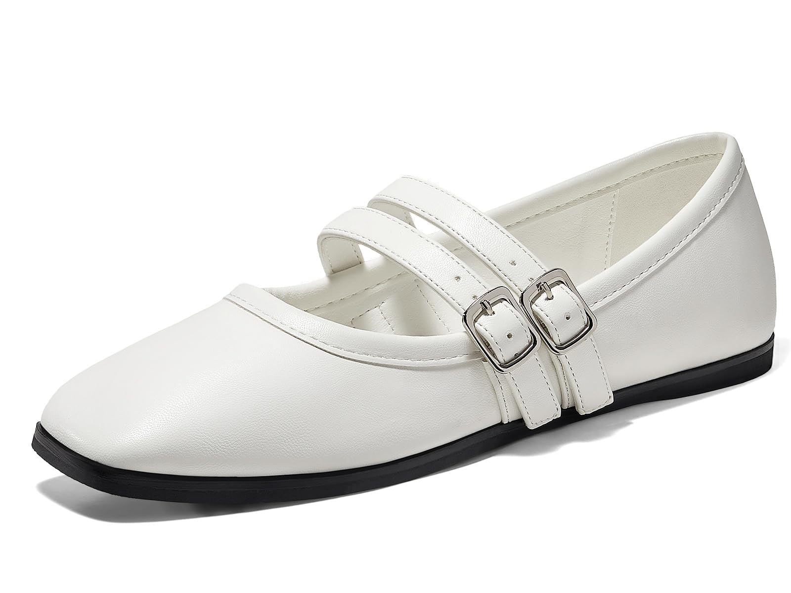 Coutgo Womens Mary Jane Flats Shoes Dressy Comfortable Square Toe Double Strap Soft Work Slip on Ballet Flat
