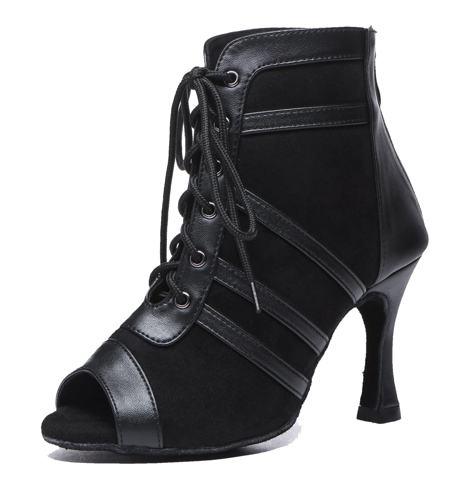 Customization Hee Height: the comfortable dance shoes in picture heel is 3.3"/Red; 3.54"/Black; 4"/Tan, you can custom make the heel height with our left chart. Please keep remind us by email after make order. Suede Sole Women Ballroom Dance Shoes: these dance boot offer suede sole for indoor dancin