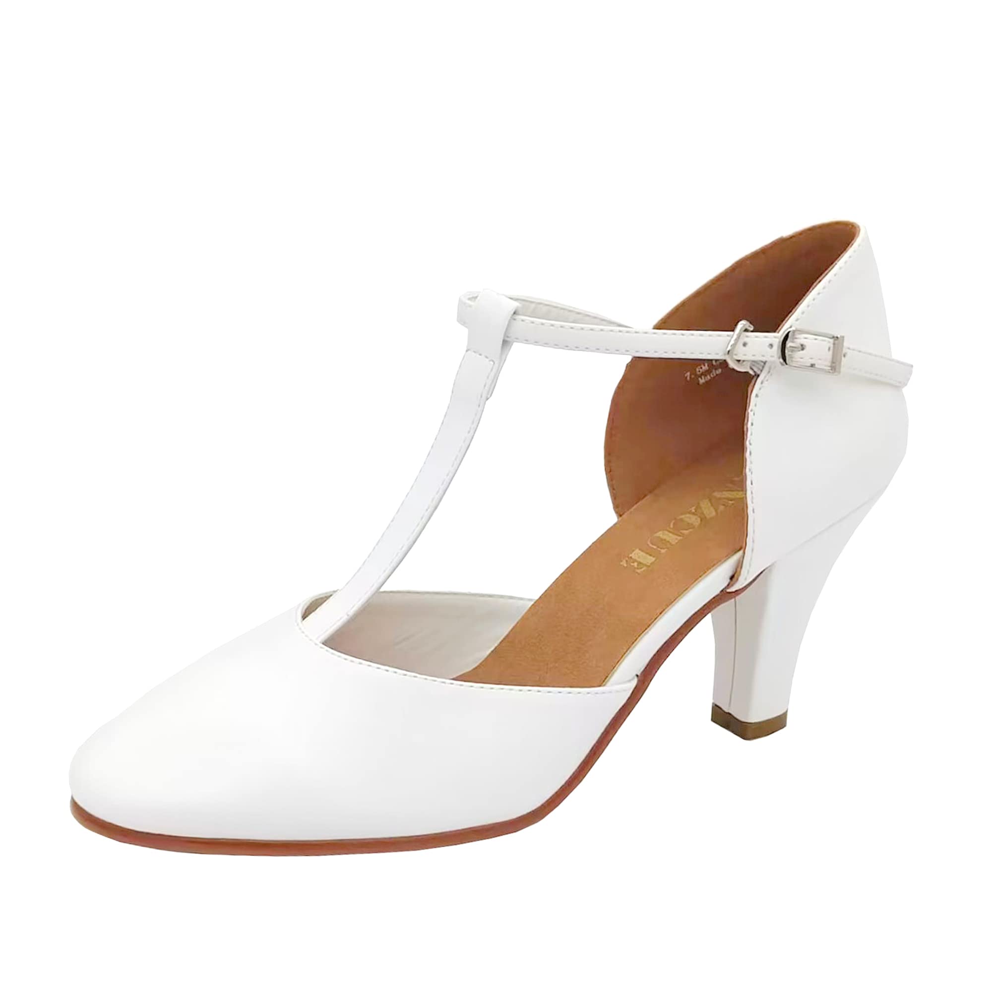 Sizing: Shoes run large. Please choose one size smaller. Suede leather cushioned insoles are breathable, shock-absorbing and exquisite. Non-slip outsoles provide grip and facilitate turning. 3" Heeled dance shoe features classic T-strap style with adjustable buckle design, very pretty, elegant and e
