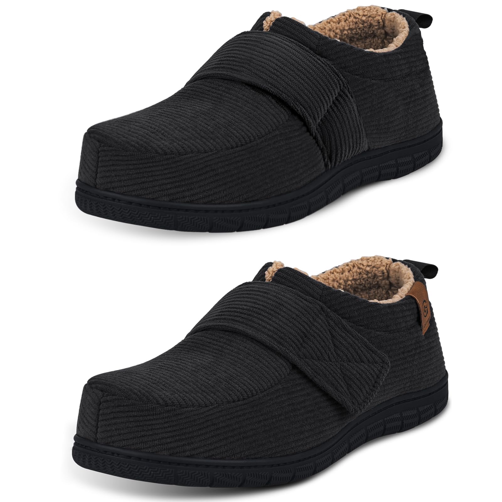 Garonne Men's Adjustable House Shoes Slippers Indoor Outdoor, with Memory Foam and Nonslip Rubber Sole