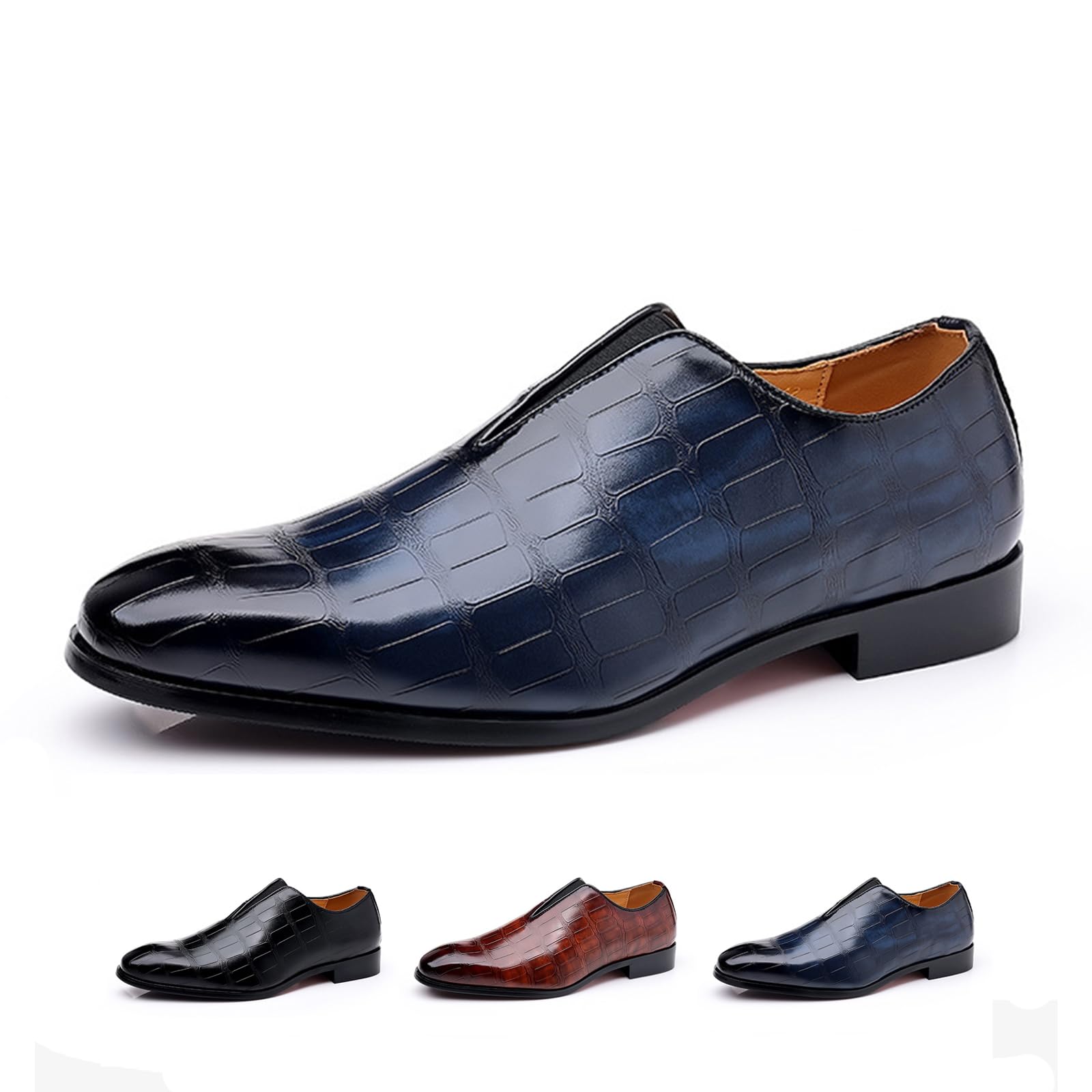 Zeberfi Men's Stone Pattern Leather Slip On Dress Loafers Fashion Elastic Strap Pointed Toe Low Top Non-Slip Luxury Business Formal Shoes