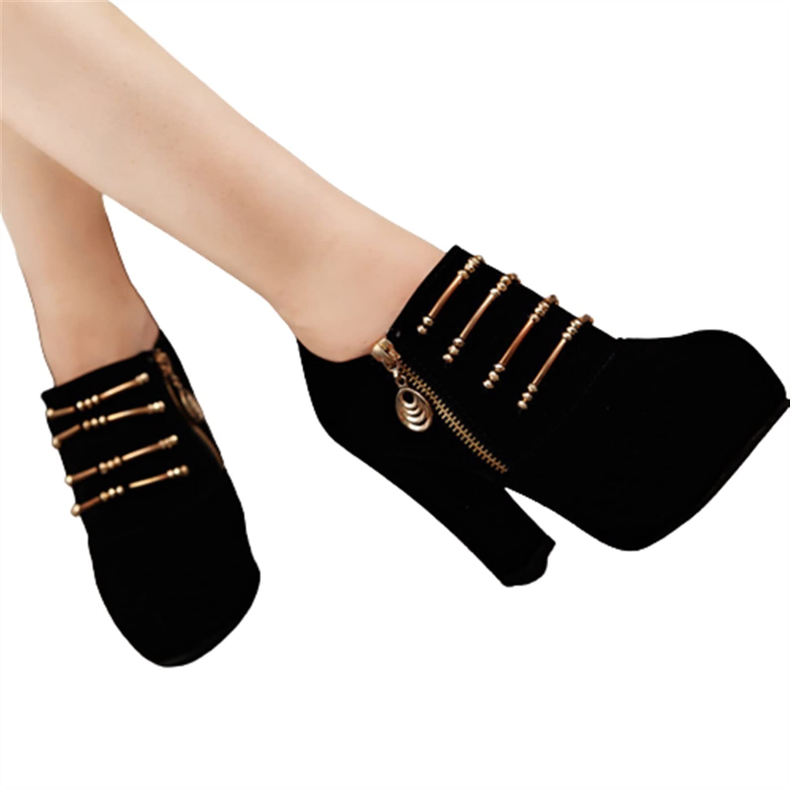 FANFENG Autumn and Winter Fashion Ankle Boots Women's Short Boots Chunky Heel Round Toe Shoes Sexy High Heels Fashion Party Dress Shoes (Color : Black