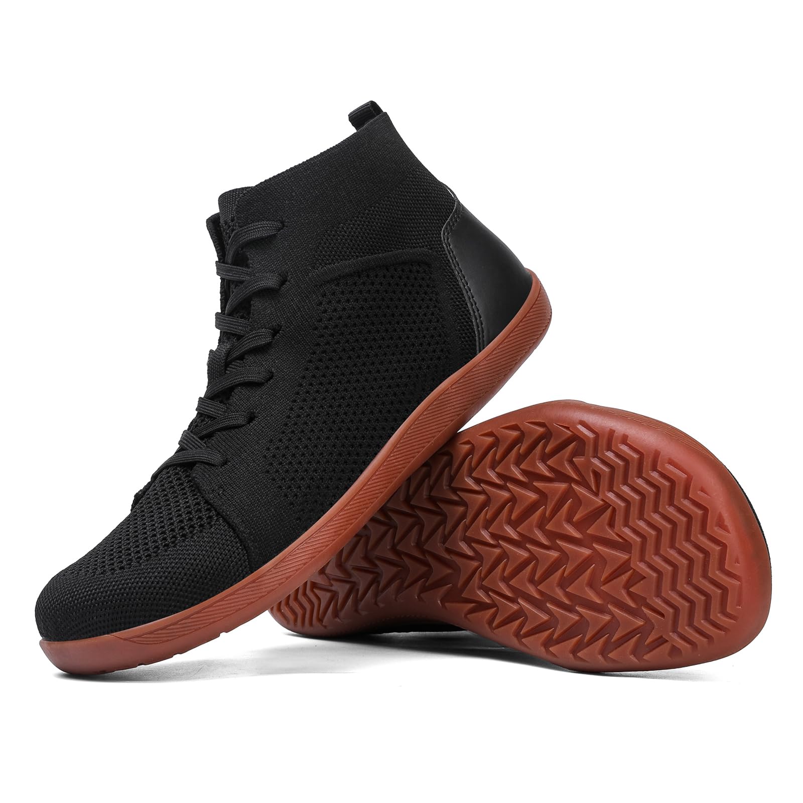 XENTORD Men's Minimalist Barefoot Shoes - Knit Lace-Up High Top Boots with Wide Toe Box Zero Drop Sole for Outdoor Driving & Walking | Lightweight