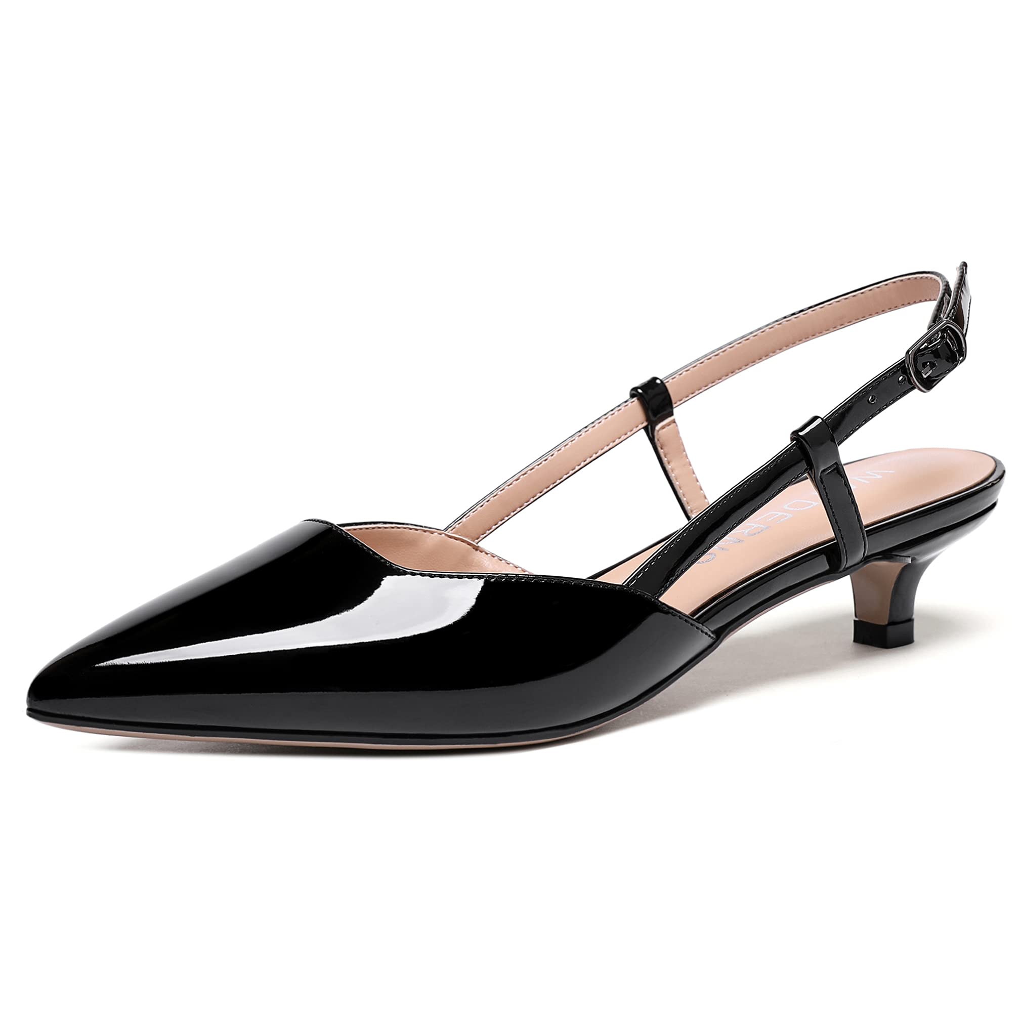 WAYDERNS Women's Pointed Toe Slingback Ankle Strap Kitten Low Heel Pumps Shoes 1.5 Inch