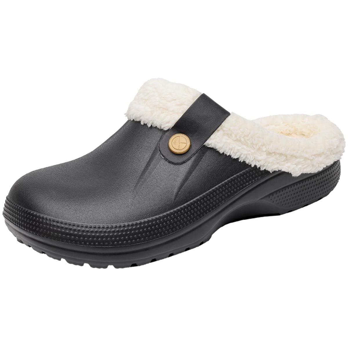 Mens Fur Lined Clogs Womens House Slippers Waterproof Garden Clogs Shoes Winter Warm Plush Home Bedroom Slippers Indoor Outdoor Mules