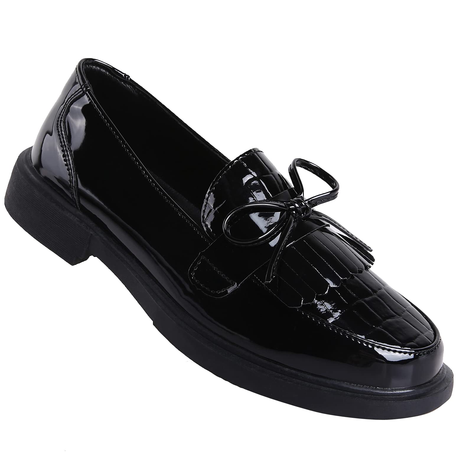 FASHION PENNY LOAFERS: These slip on loafers look super fashionable with the chain on the patent leather upper. This elegant style has always been popular, adding glamour to your outfit SLIP-ON DESIGN: These women loafer shoes have a soft upper, making it easy to put on and take off, and will not sl