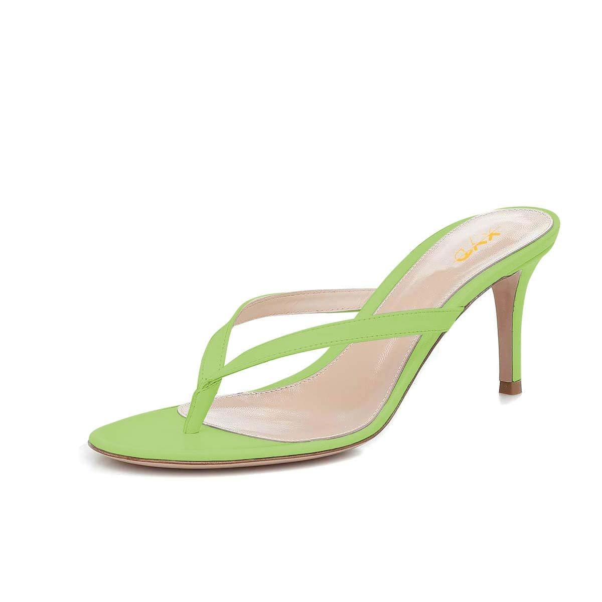 [Flip Flops for Women] Thin Heel Height, 2.36-3.15 inches(6-8 CM), varied by size. Please check the last size chart image on the left for your best fitting. [Shoes Features] Ladies open toe mid heel slipper shoes for summer casual dress, slip-on style, open-back backless thong sandals, easy to wear