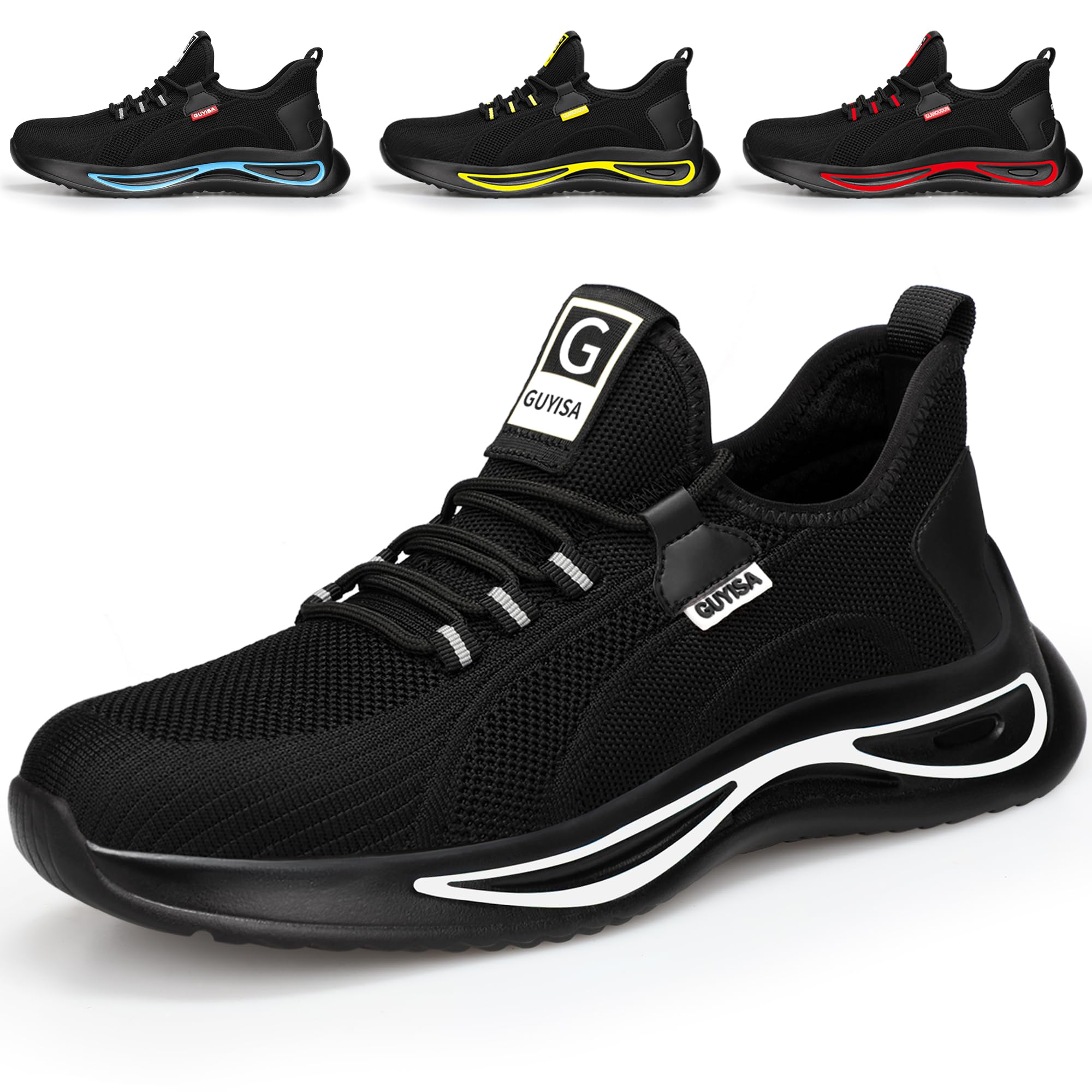 GLANOUDUN Steel Toe Shoes for Men Lightweight Work Shoes for Men Black Steel Toe Sneakers Comfortable Safety Tennis Sneakers Indestructible Men's
